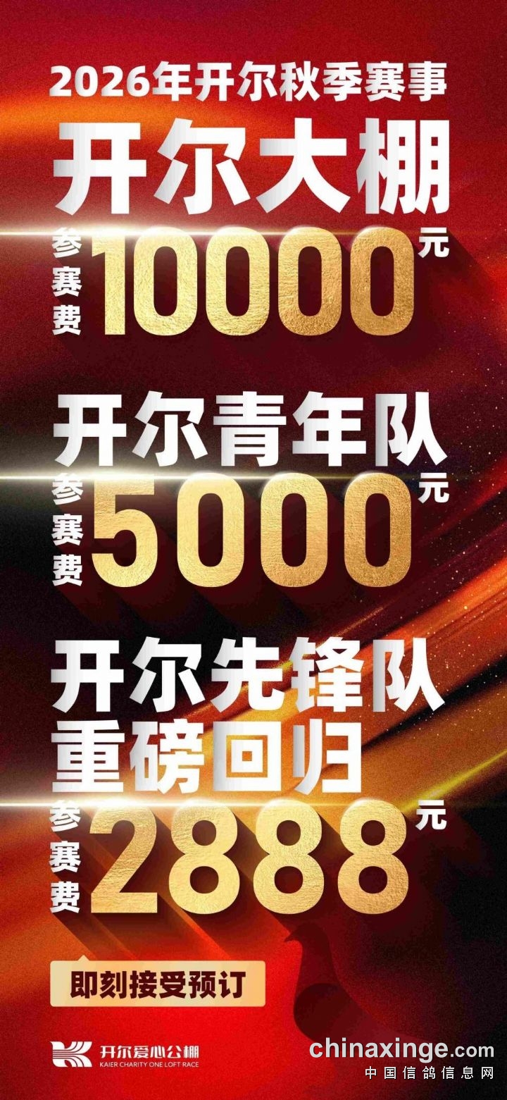 今年是开尔公棚走来的第十年,始终不忘初心,致力于为广大鸽友提供公平、公正、透明的赛事环境。感谢每一位将信任托付给我们的鸽友朋友,我们深知,赛鸽事业的繁荣离不开每一位鸽友的辛勤付出。在这个充满正能量的赛鸽舞台上,每一位鸽友都是主角。为梦想翱翔,为爱心传递,让我们携手共进,一起见证更多辉煌时刻!