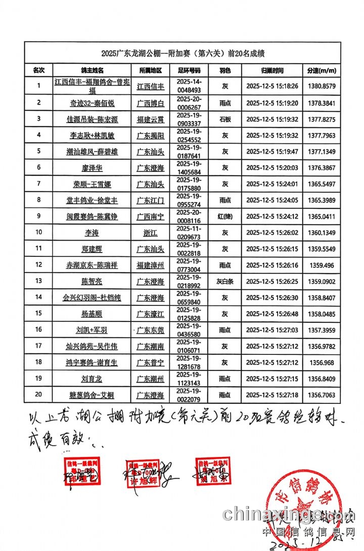 2025广东龙湖公棚附加赛(第六关)前20名成绩