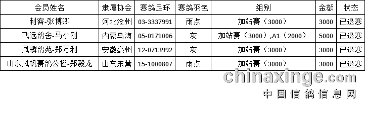 2026天津宇航收鸽公告
