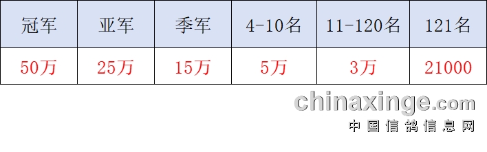 10名,每报名10羽从11名开始增加一个获奖名额(奖金30000元)