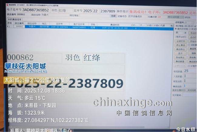 四川攀枝花市太阳城赛鸽中心3月5日入棚记录