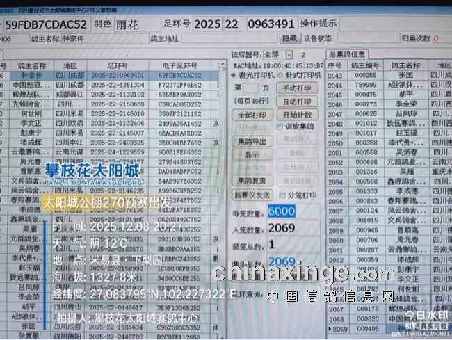 四川攀枝花市太阳城赛鸽中心3月11日入棚记录