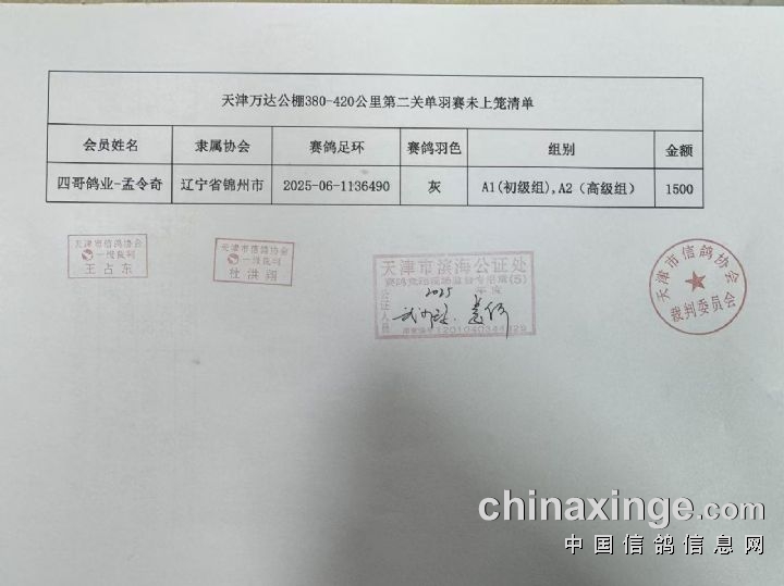 天津万达公棚380-420公里第二关单羽赛未上笼清单