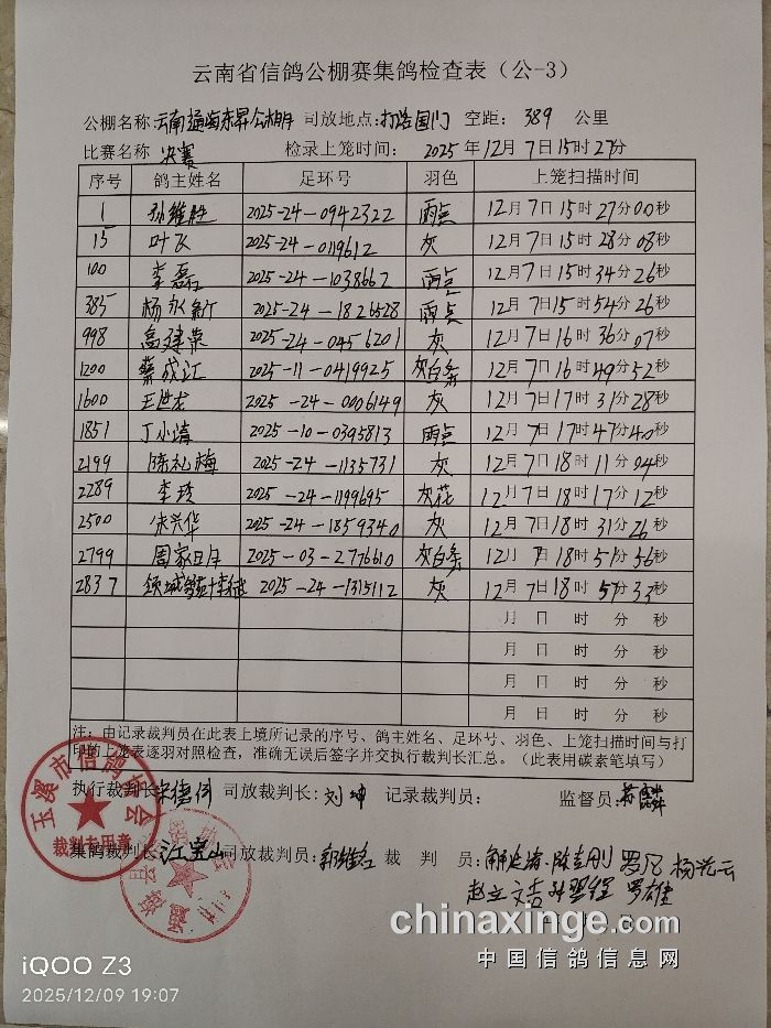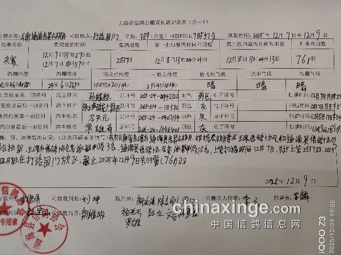 通海东昇赛鸽中心(秋棚)2025年决赛获奖鸽照片欣赏