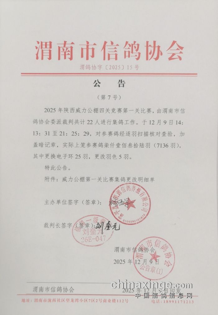 渭南市信鸽协会公告