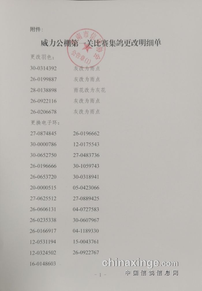 陕西威力公棚三关鸽王(暂排)表