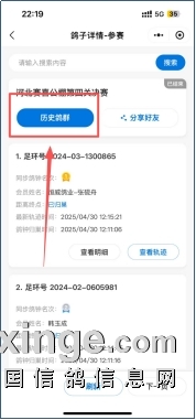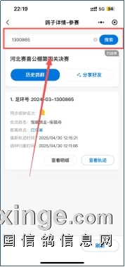 4.如果想要查看指定鸽子的轨迹,可以搜索足环号后6位: