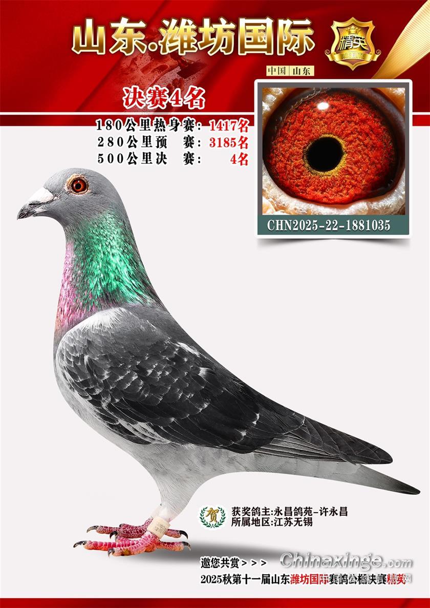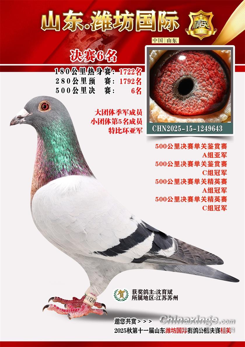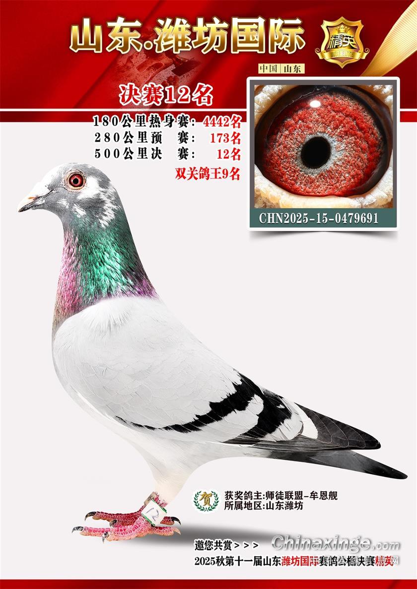 山东潍坊国际赛鸽公棚2025年决赛获奖鸽照片1-100名