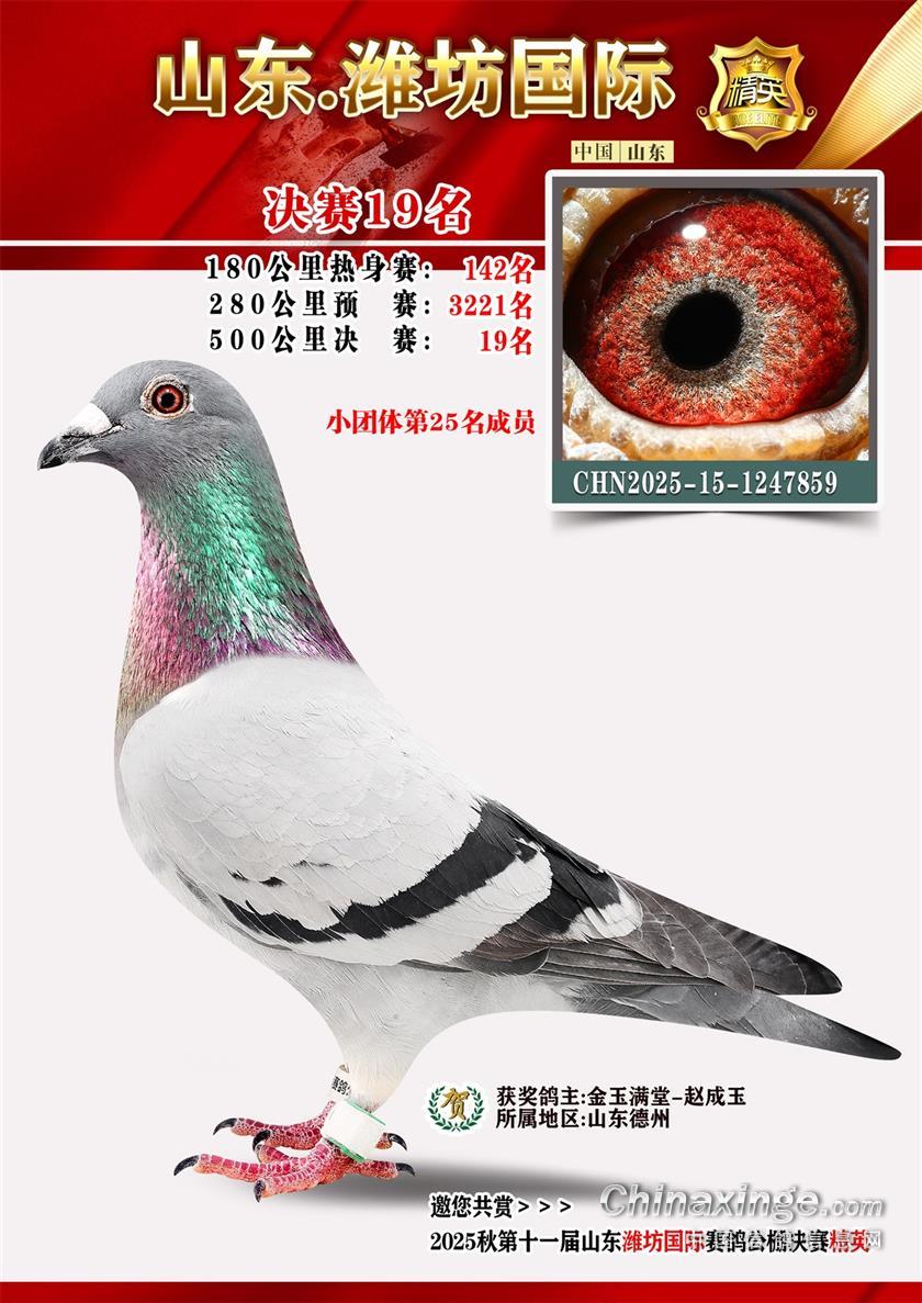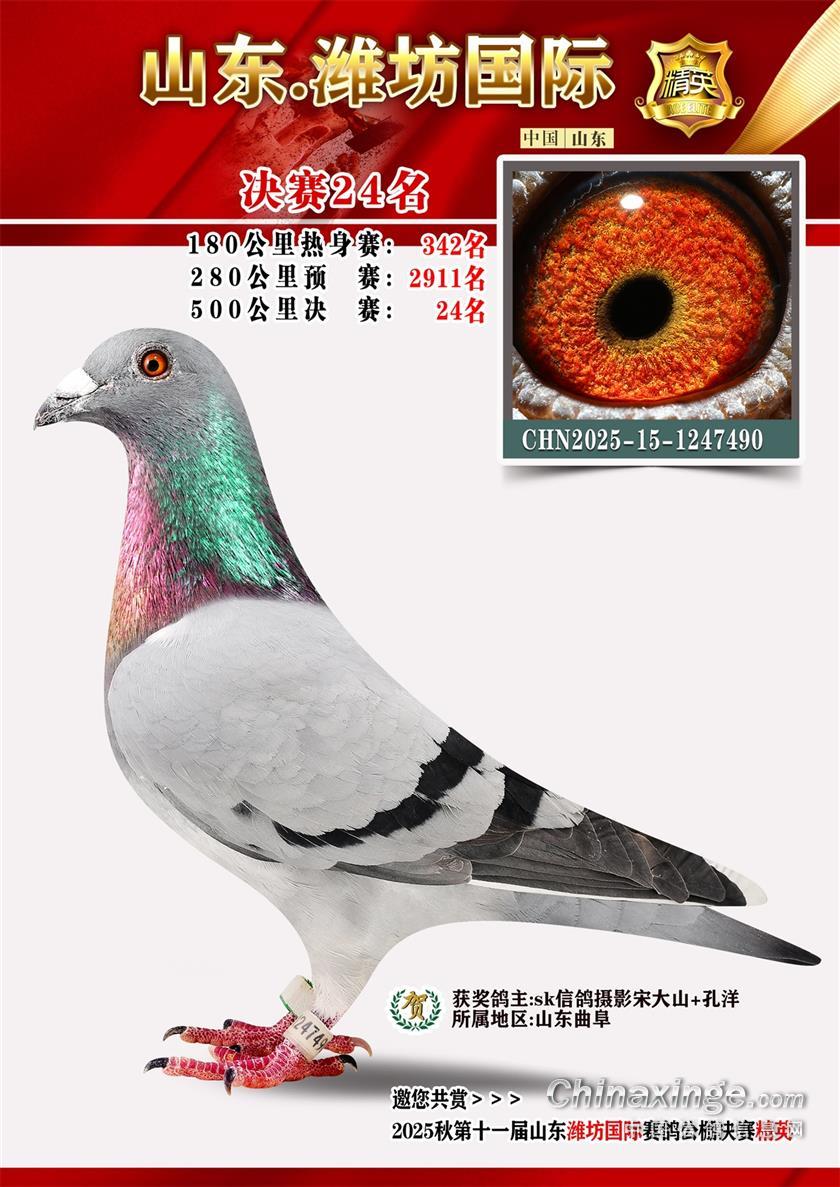 山东潍坊国际赛鸽公棚2025年加站赛获奖鸽照片1-50名