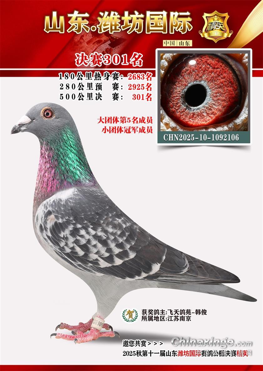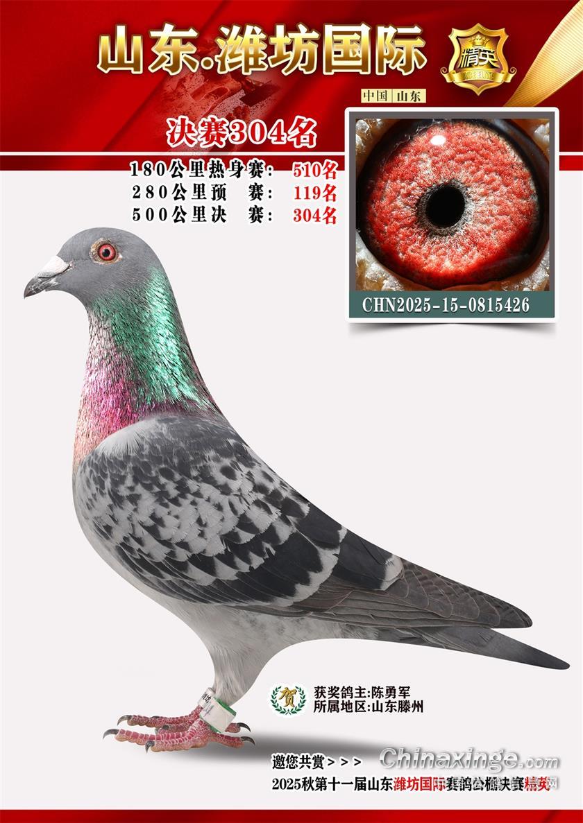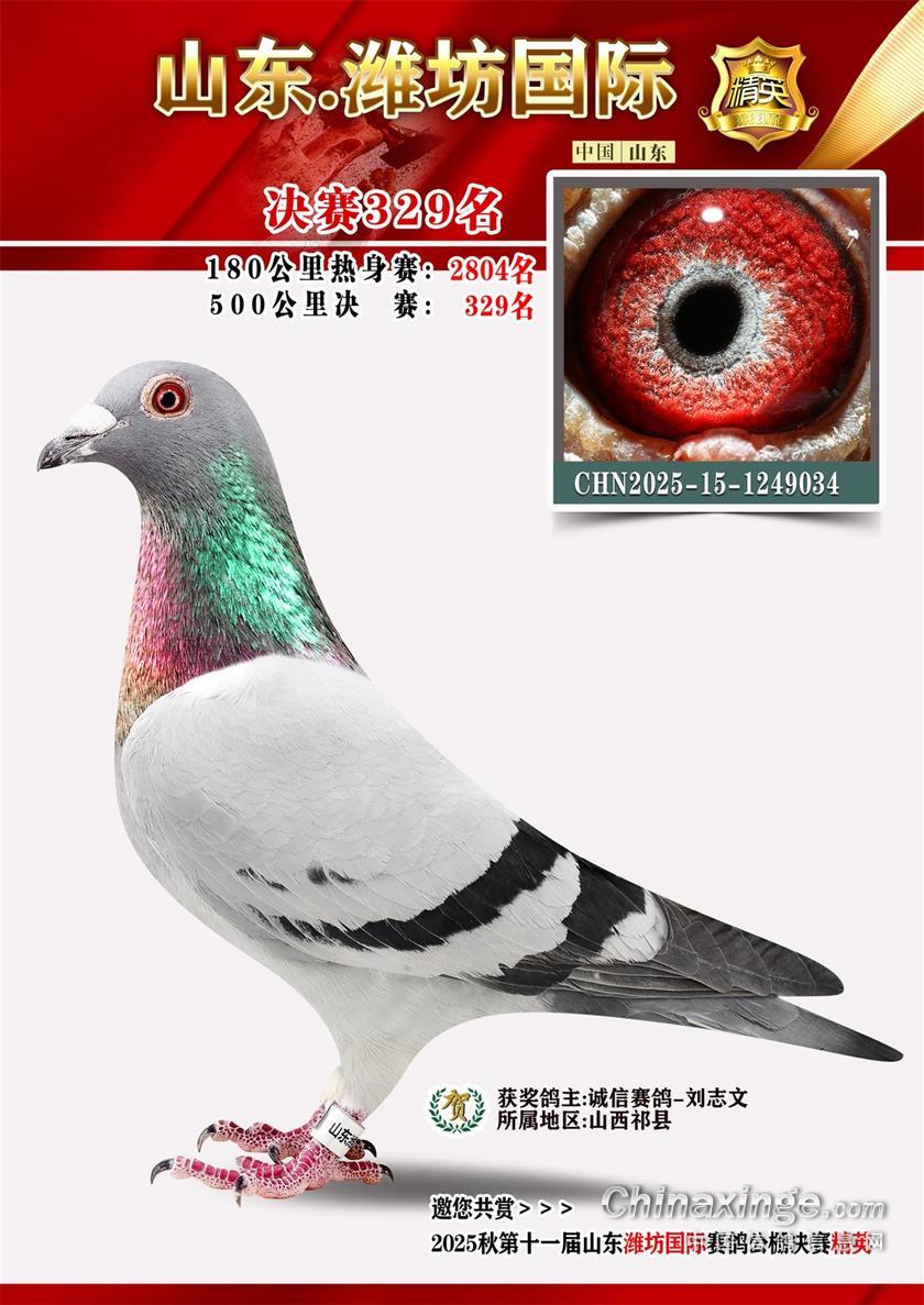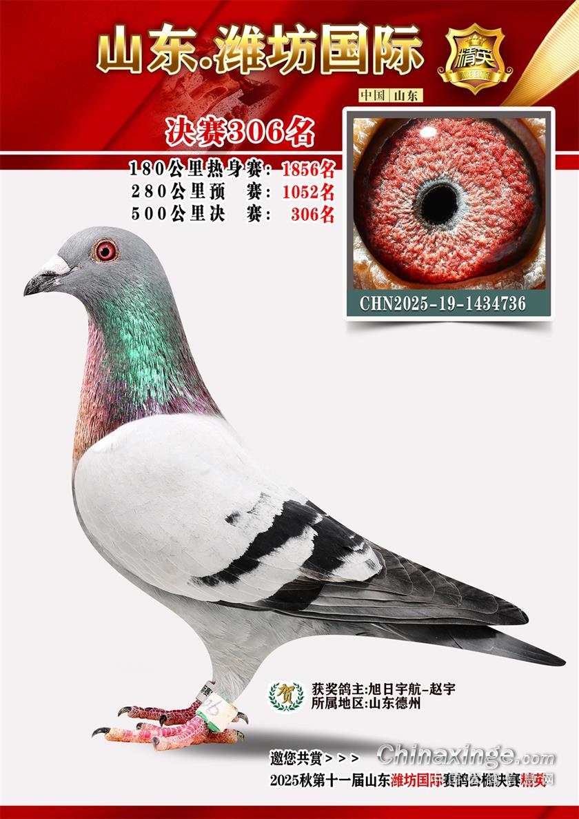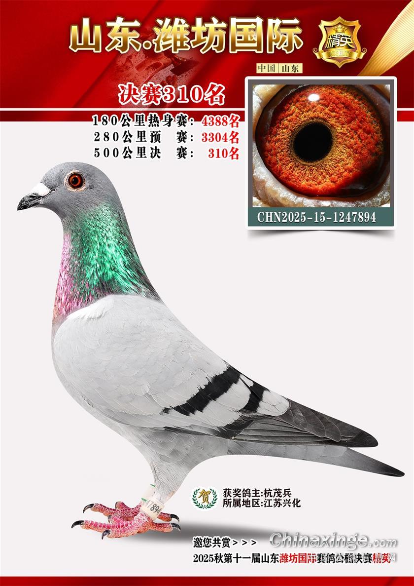 山东潍坊国际赛鸽公棚2025年决赛获奖鸽照片301-400名