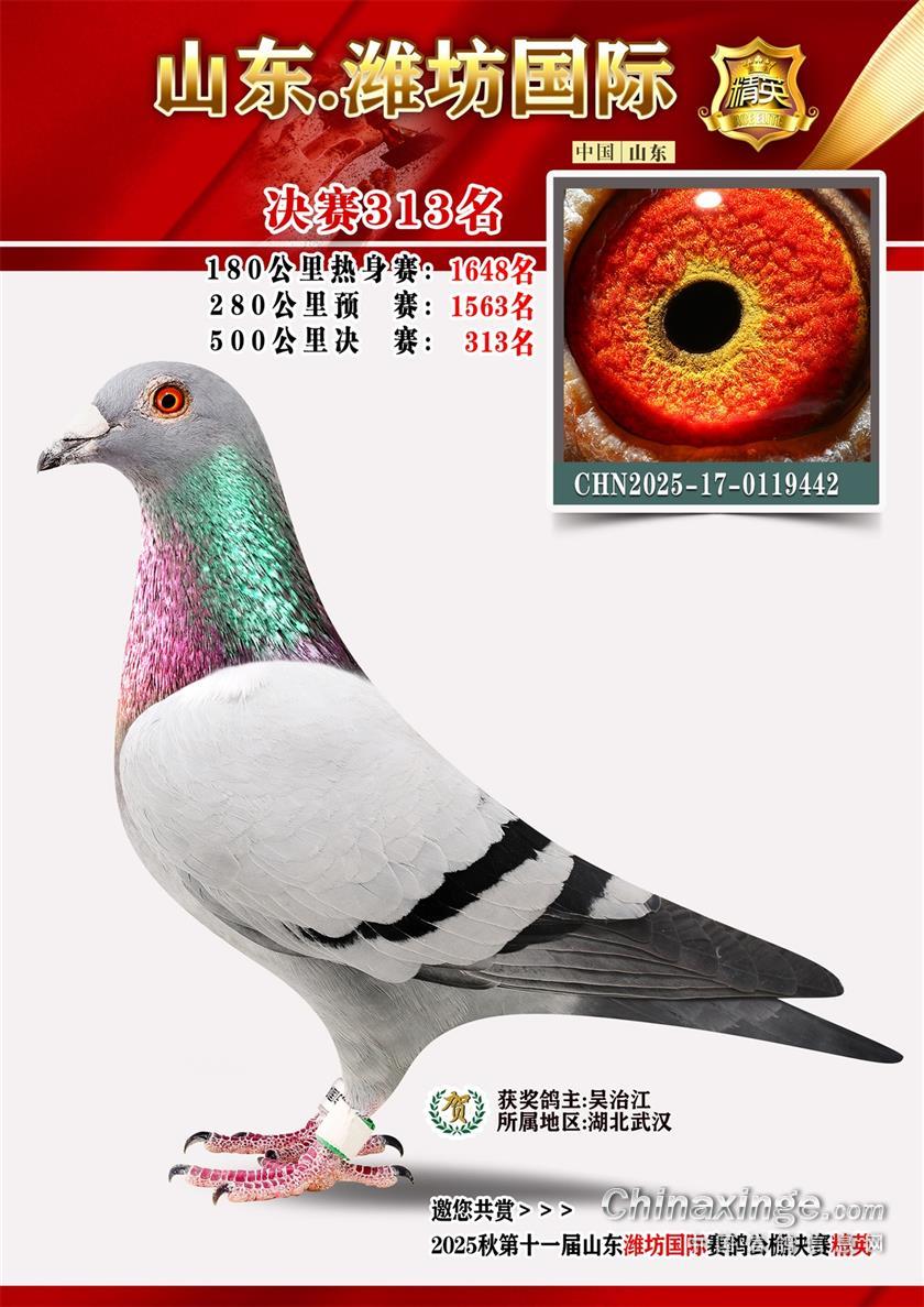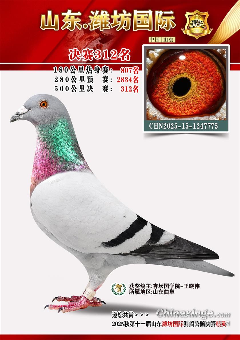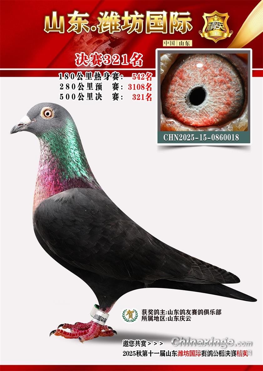 山东潍坊国际赛鸽公棚2025年加站赛获奖鸽照片1-50名