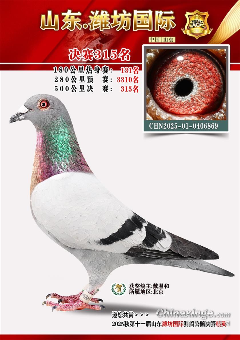 山东潍坊国际赛鸽公棚2025年决赛获奖鸽照片401-500名