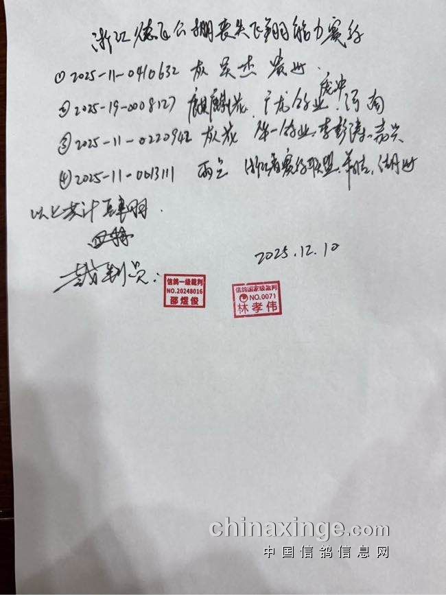 浙江德飞赛鸽公棚第三关500公里决赛丧失飞翔能力赛鸽名单