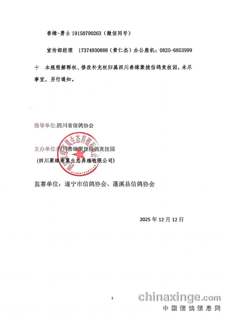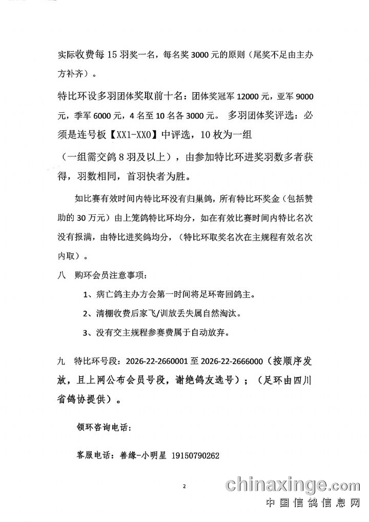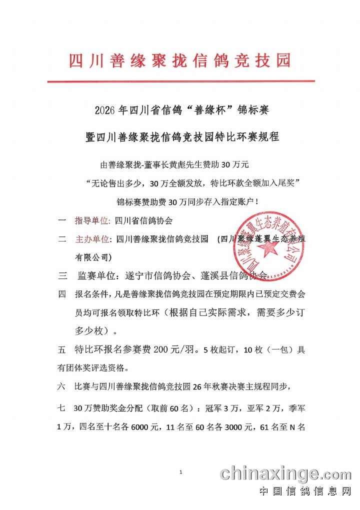 四川善缘聚拢信鸽竞技园特比环赛规程