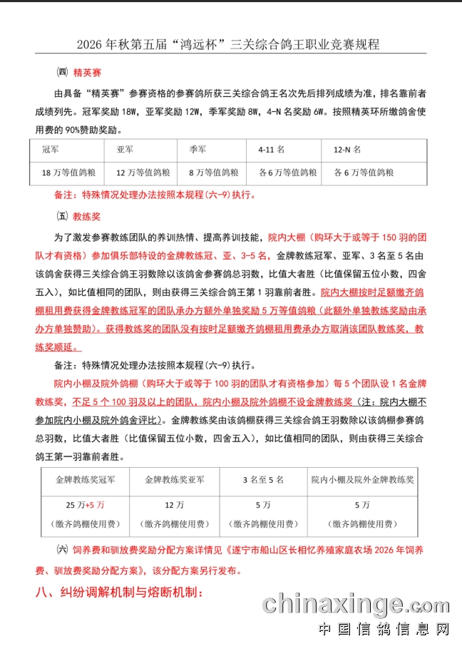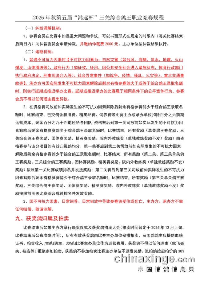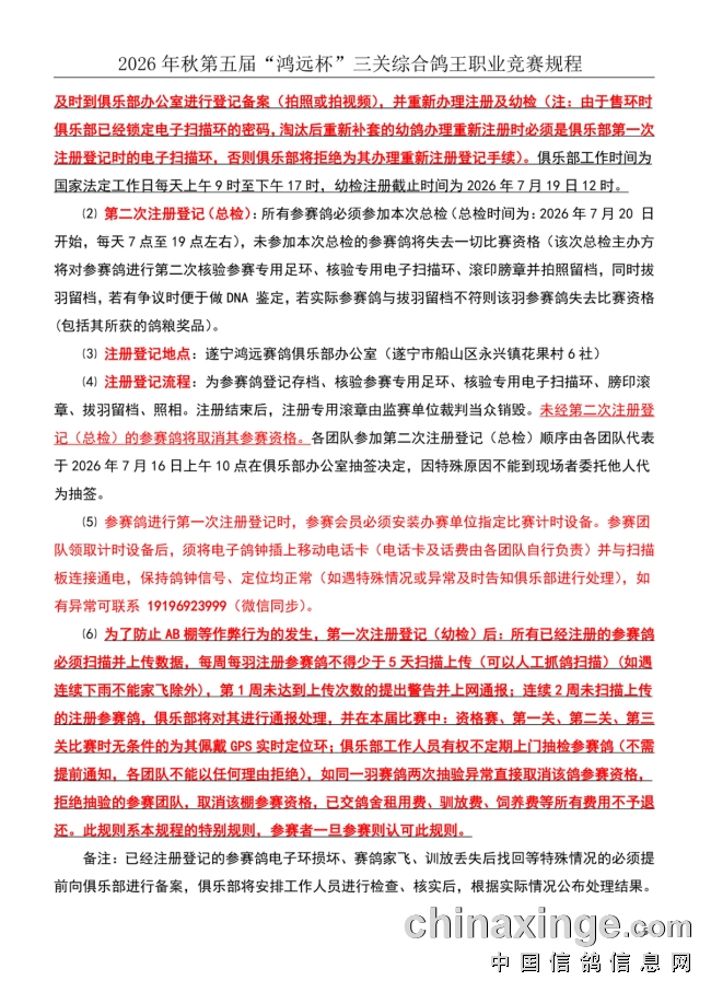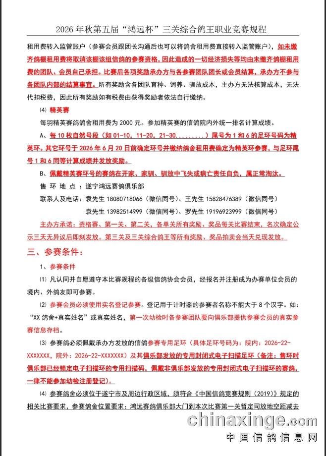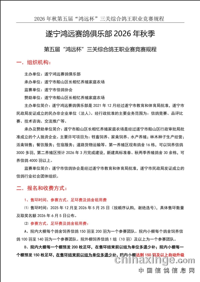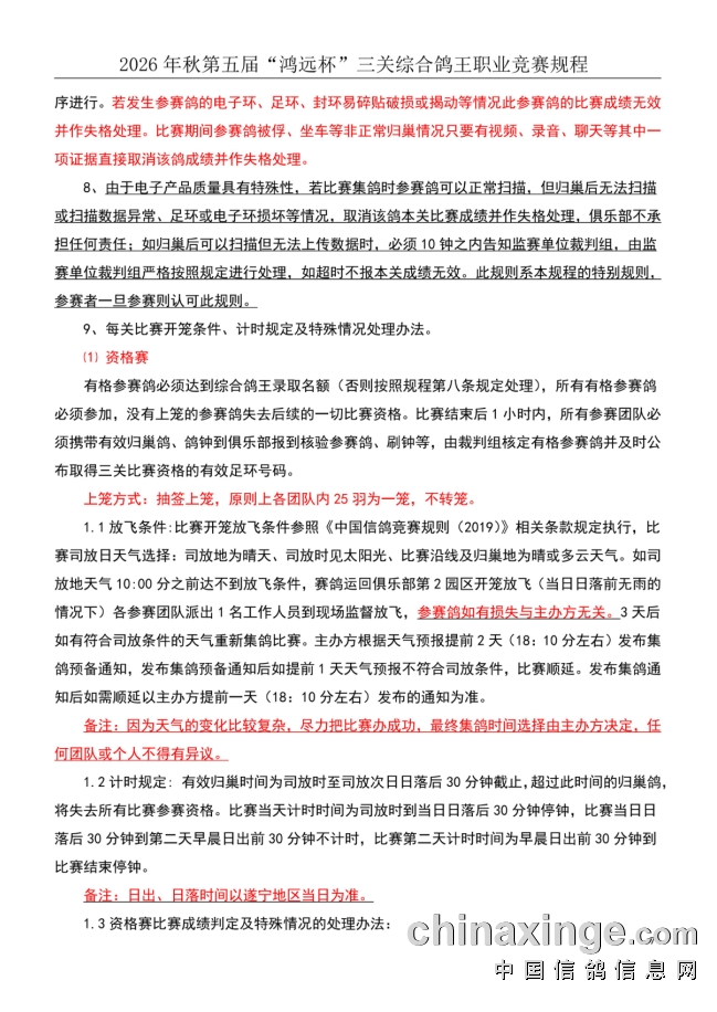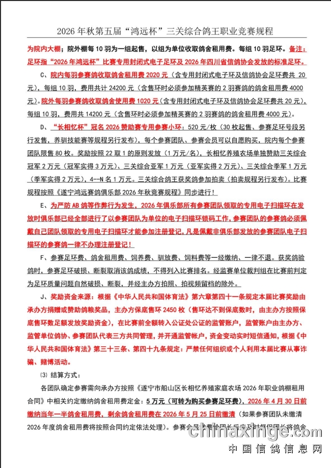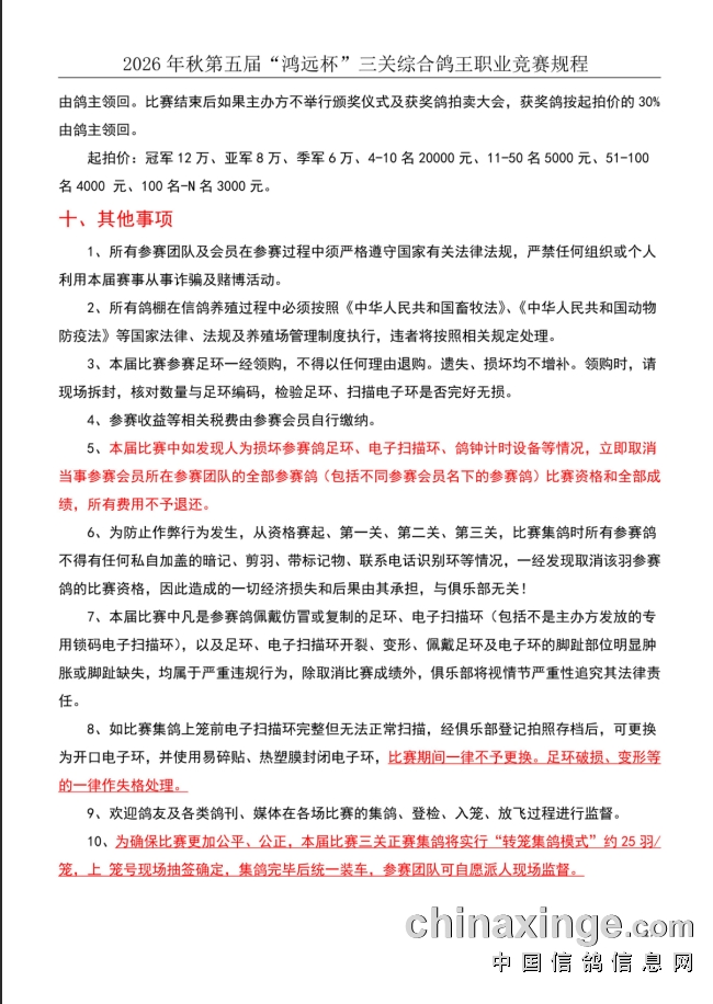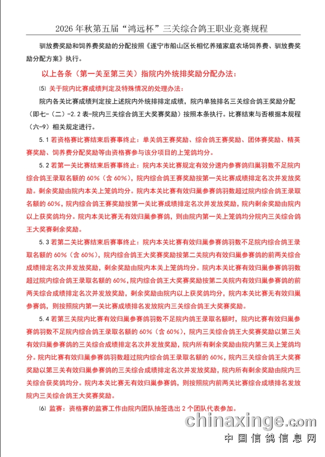 2026年秋第五届“鸿远杯”三关综合鸽王职业赛竞赛规程