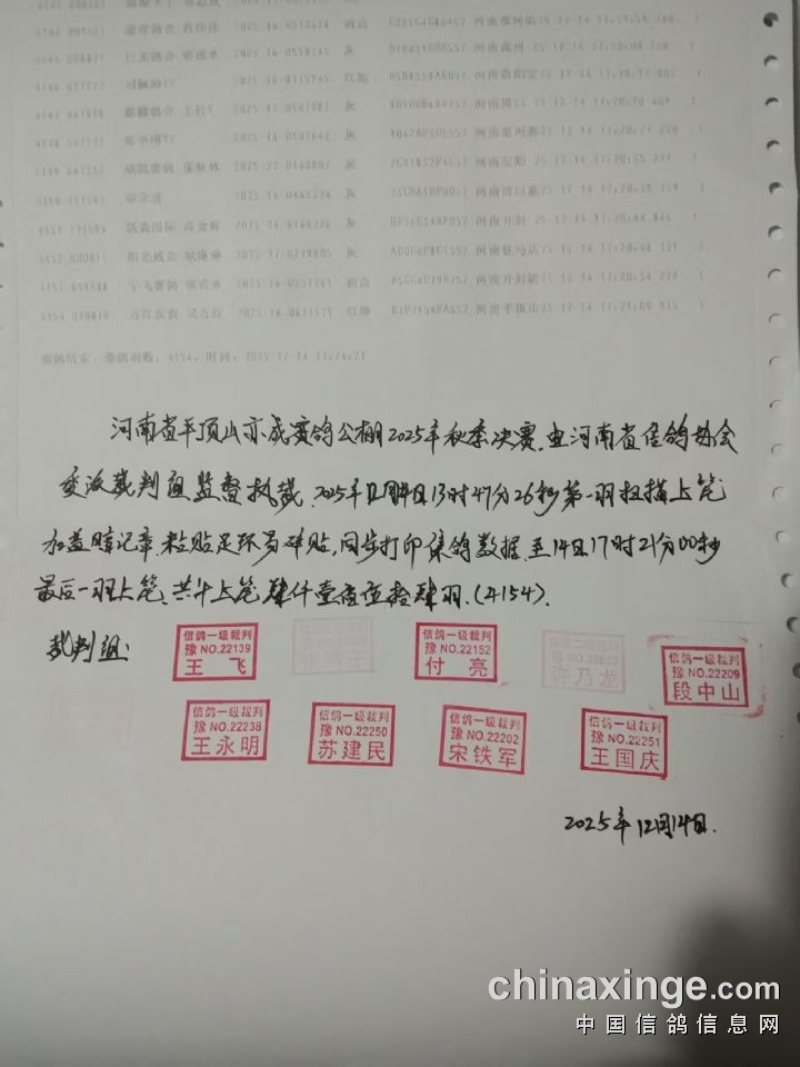 由于中信网鸽圈发布网络故障,先在公棚群里发布,等中信网可以发布了再上传图片和视频(备注:12月16日网络恢复正常,已上传)