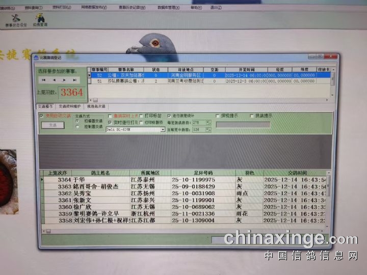 江苏弘腾赛鸽公棚:12月12日家飞扫描