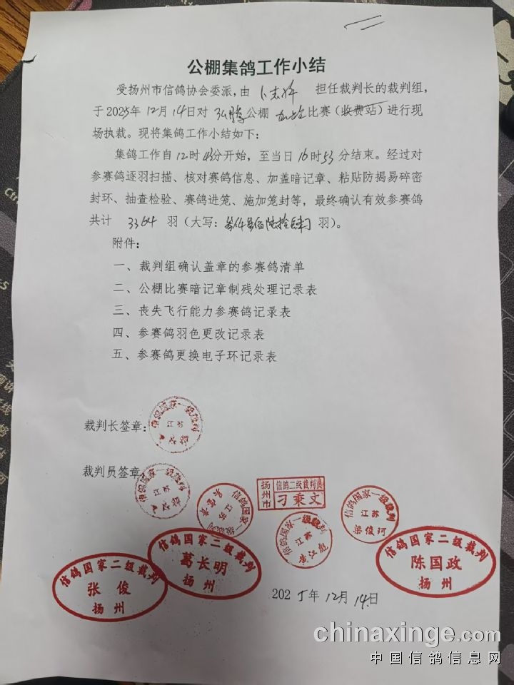江苏弘腾赛鸽公棚:双关加站赛(第一关)集鸽现场照片及小结