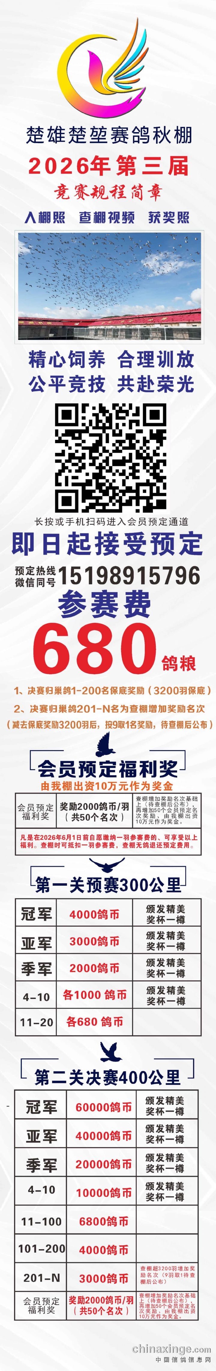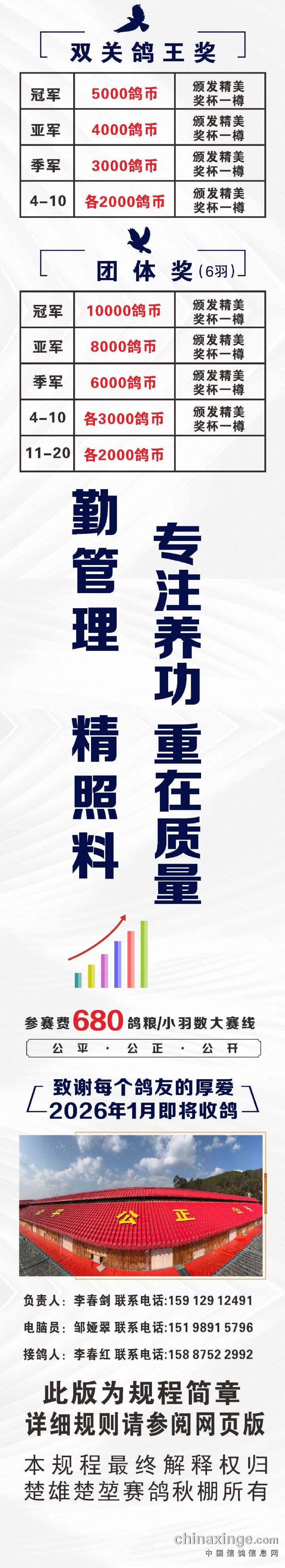楚堃赛鸽秋棚2026年(第三届)规程简章