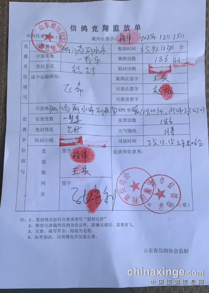 山东潍坊国际赛鸽公棚第十一届王者千公里挑战赛于2025年12月15日早8点06分在浙江丽水开笼。