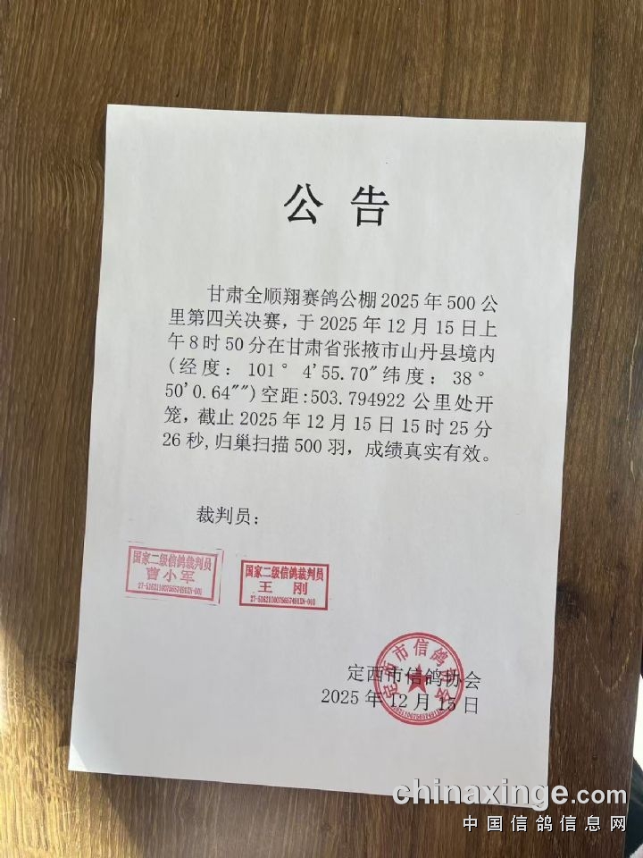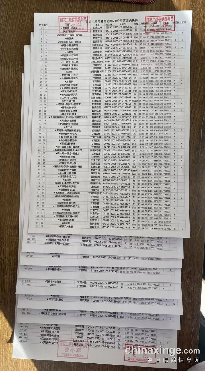 甘肃全顺翔:2025年500公里第四关定西市信鸽协会公告