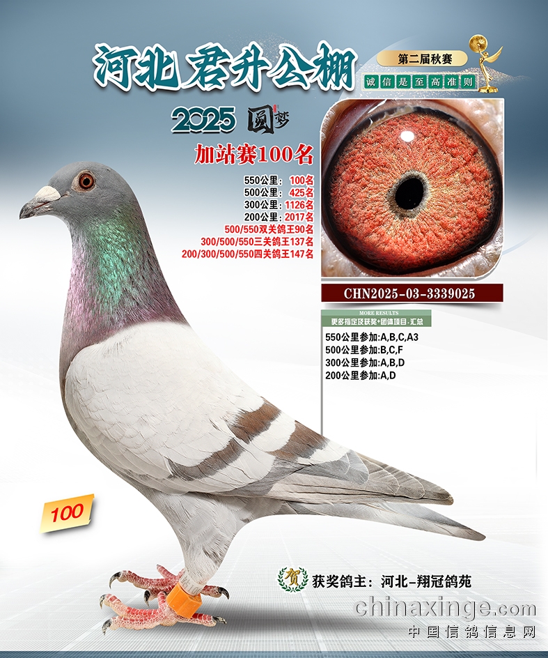 河北君升公棚秋赛550公里加站赛71-100名获奖鸽照片