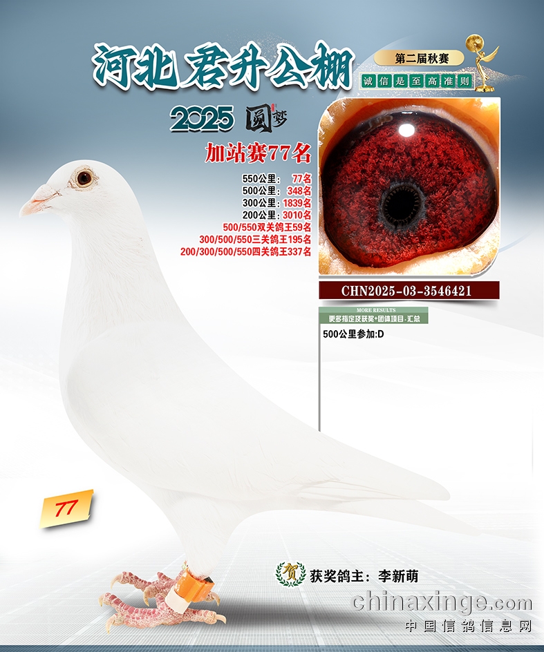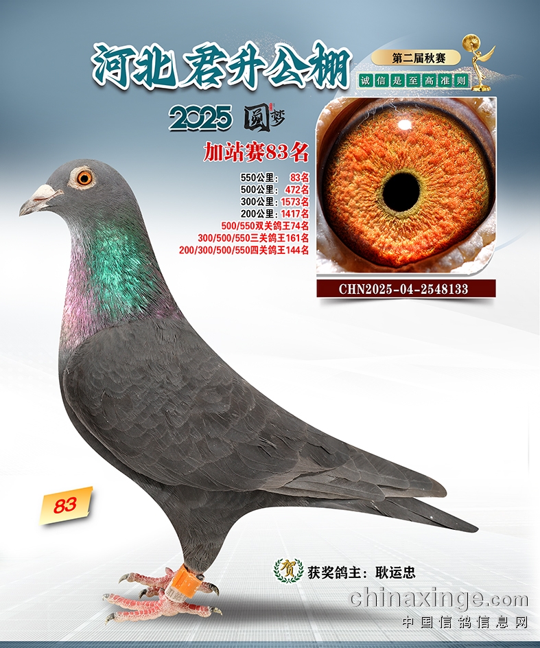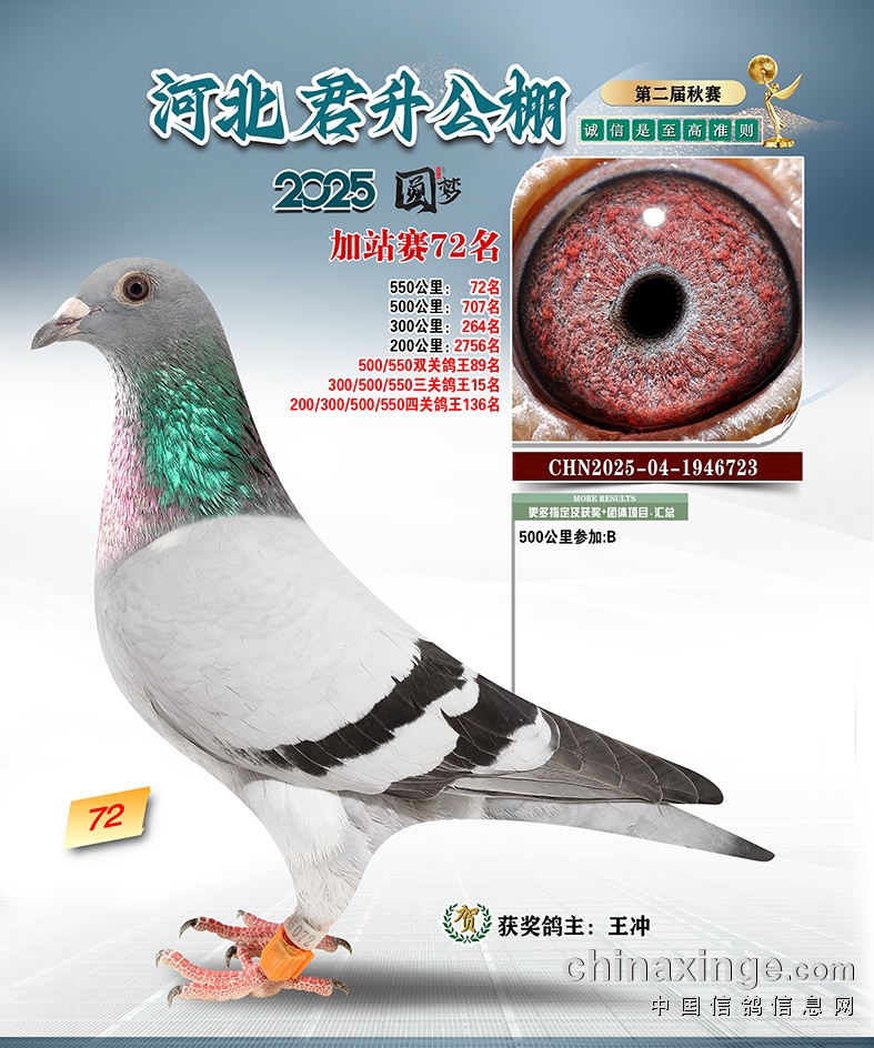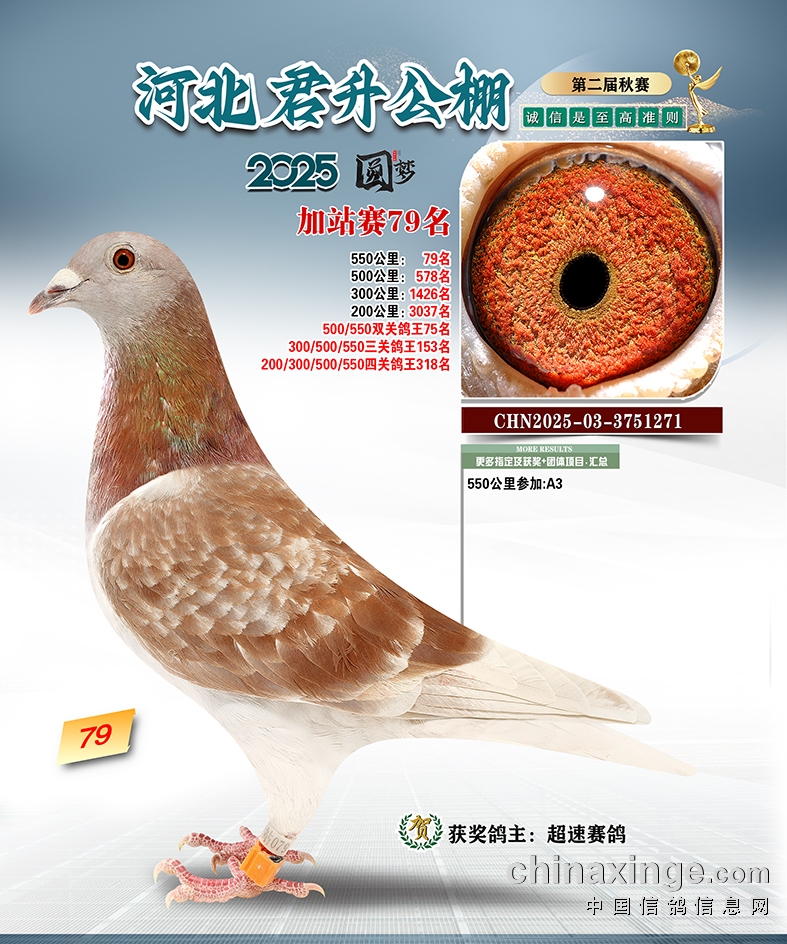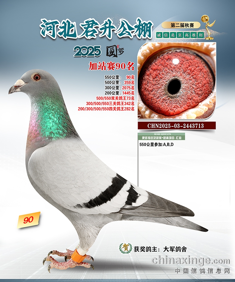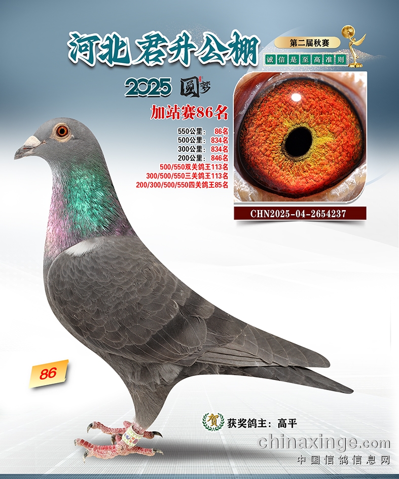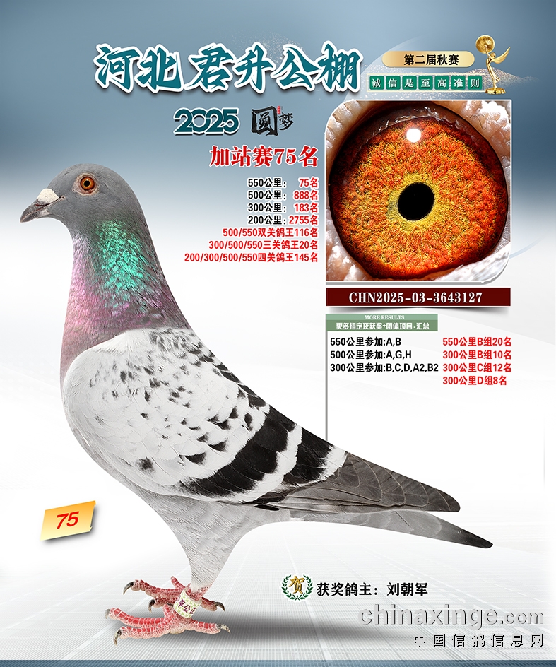 河北君升公棚秋赛550公里加站赛冠军-10名获奖鸽照片