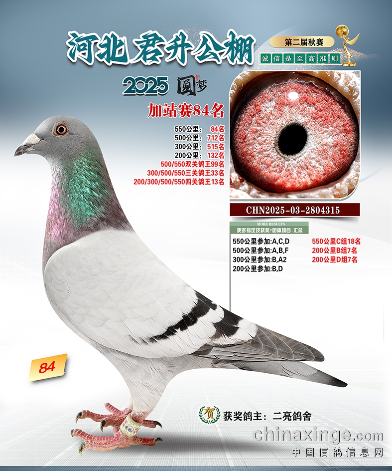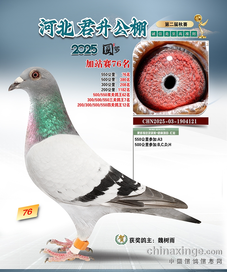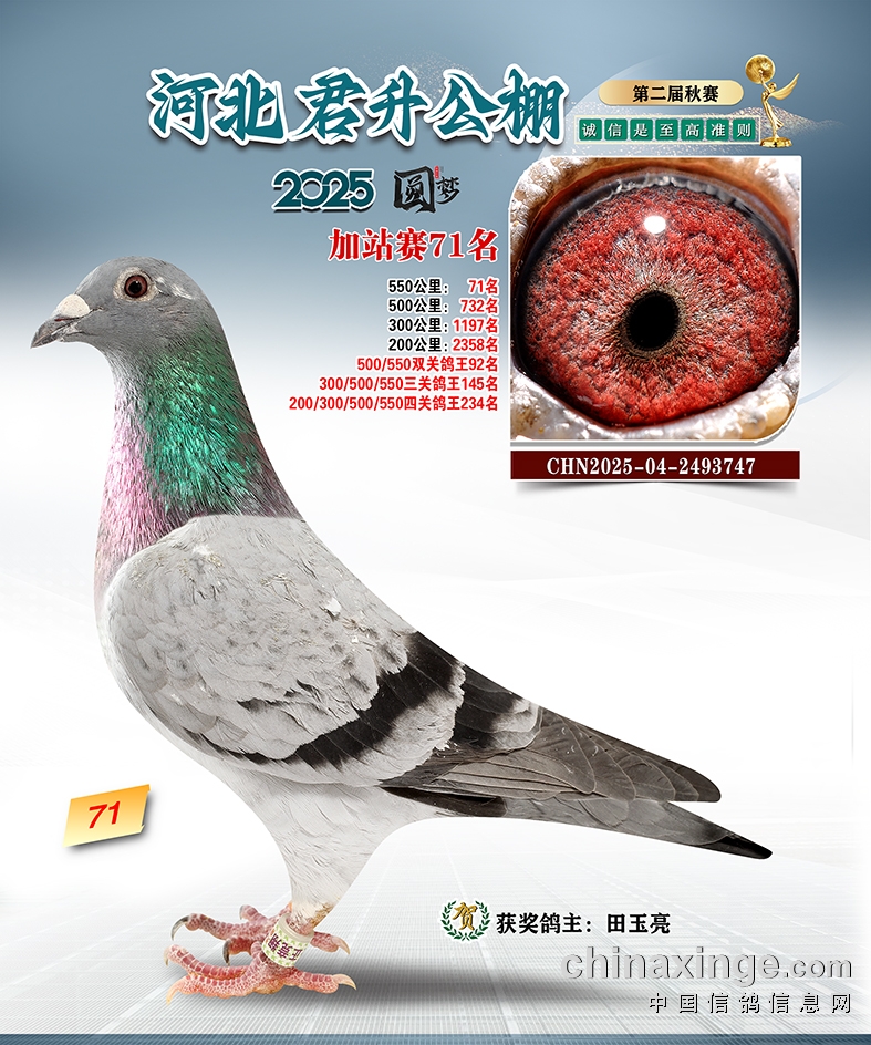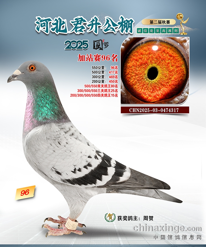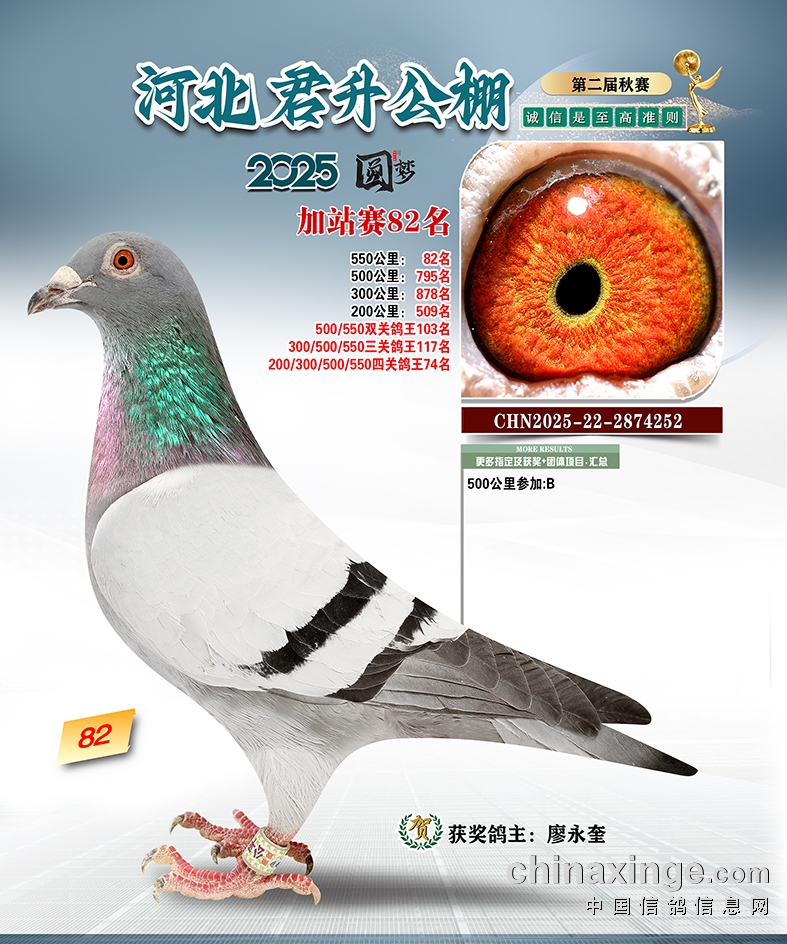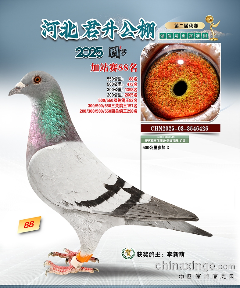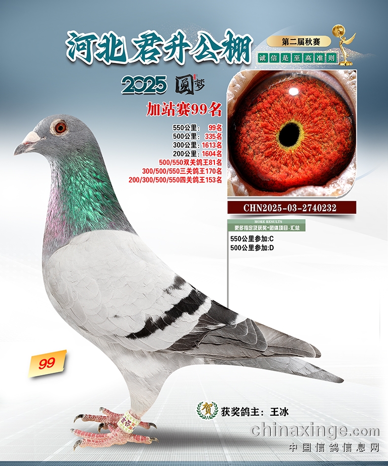 河北君升公棚秋赛550公里加站赛冠军-10名获奖鸽照片