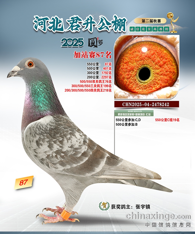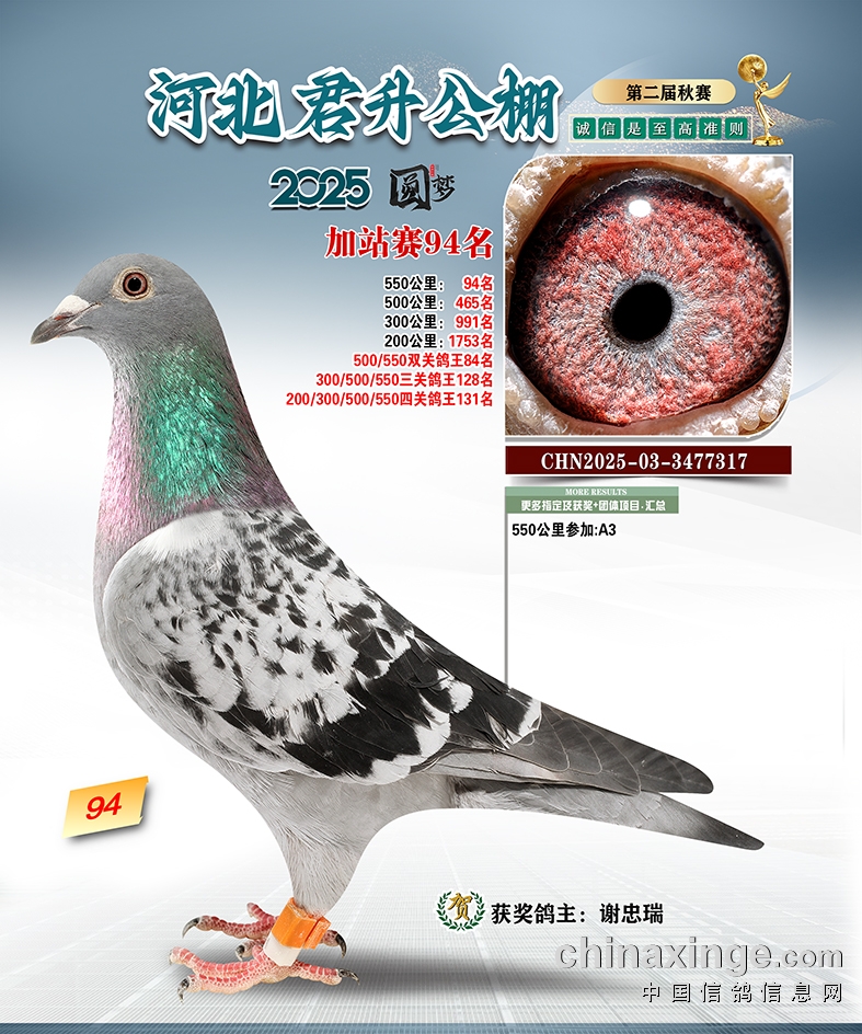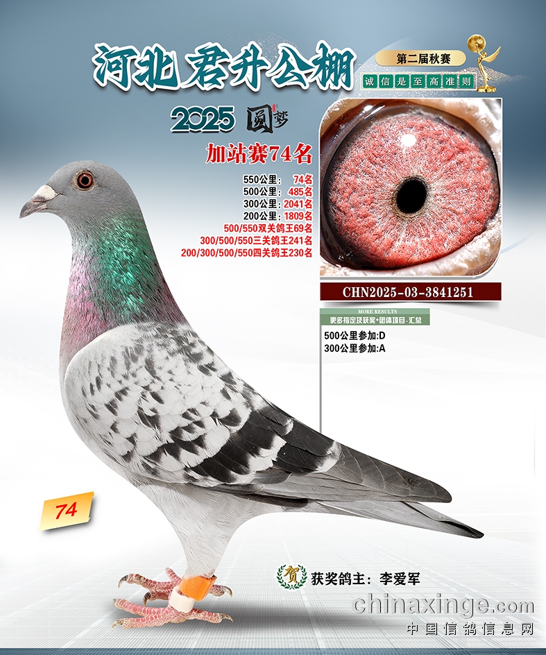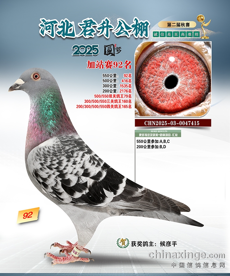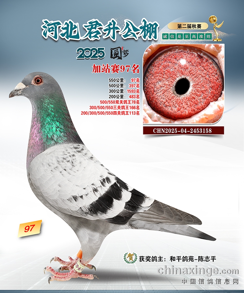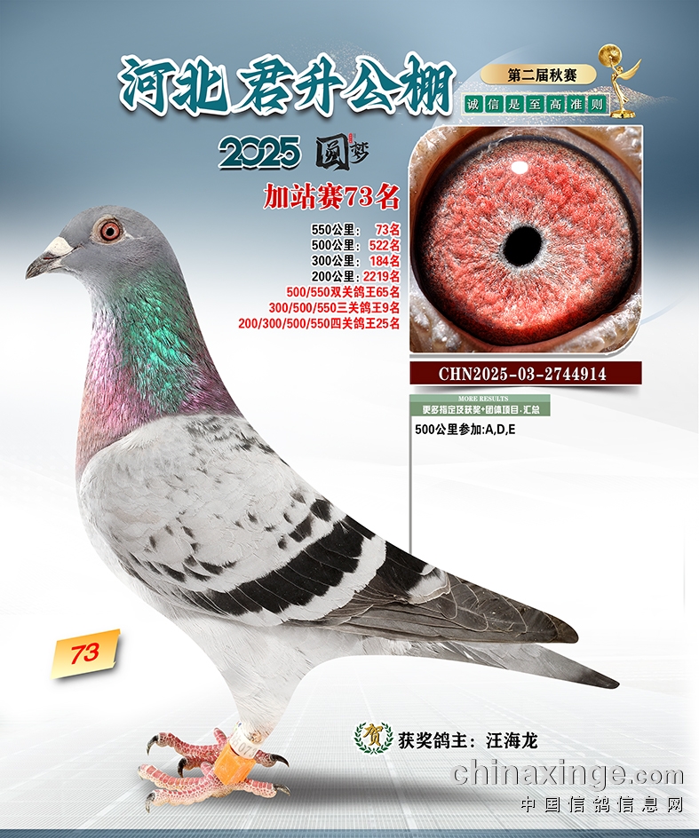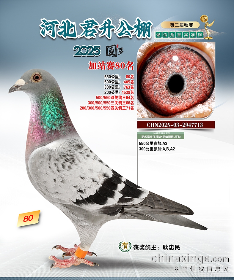 河北君升公棚秋赛550公里加站赛冠军-10名获奖鸽照片