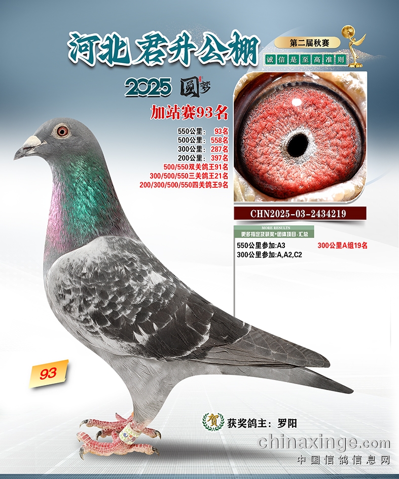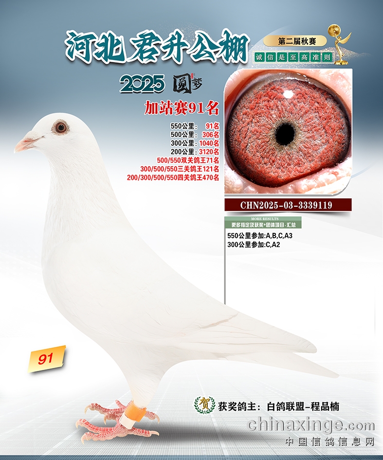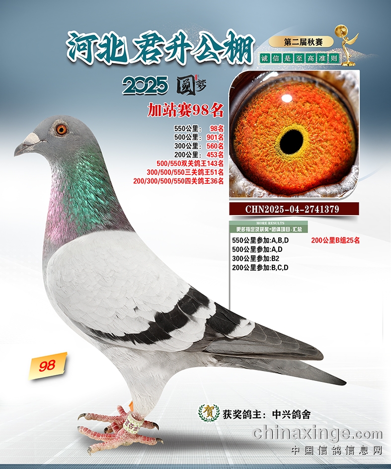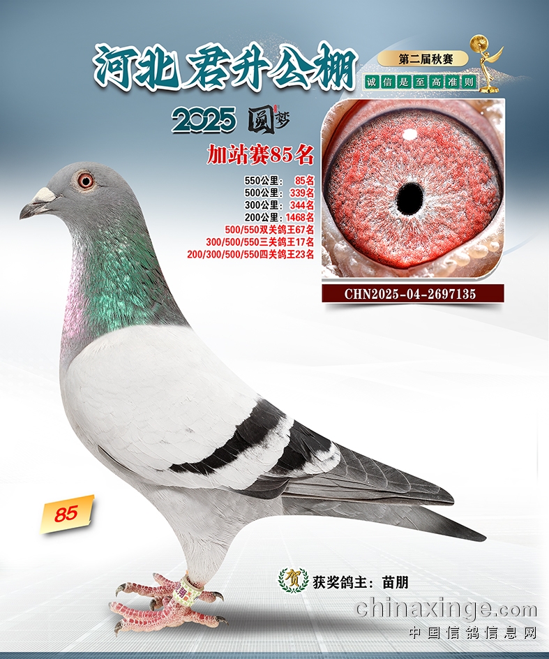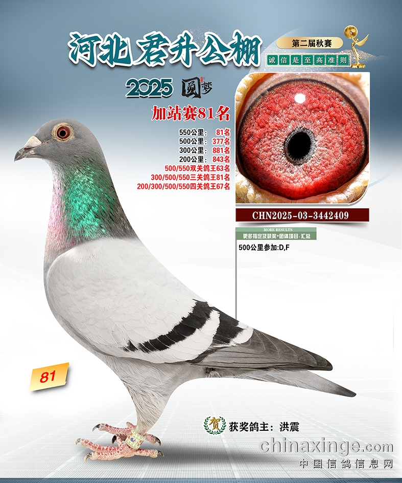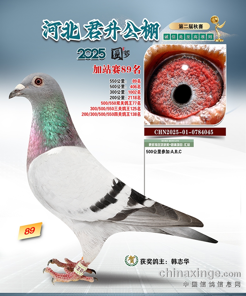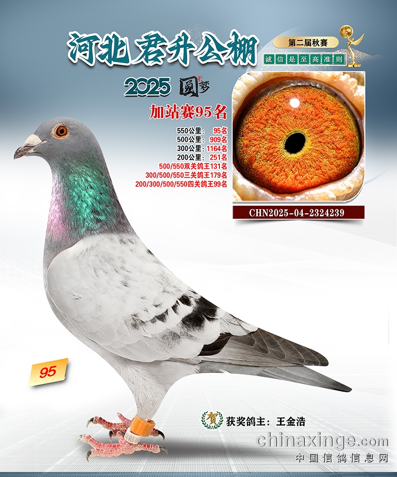 河北君升公棚秋赛550公里加站赛冠军-10名获奖鸽照片