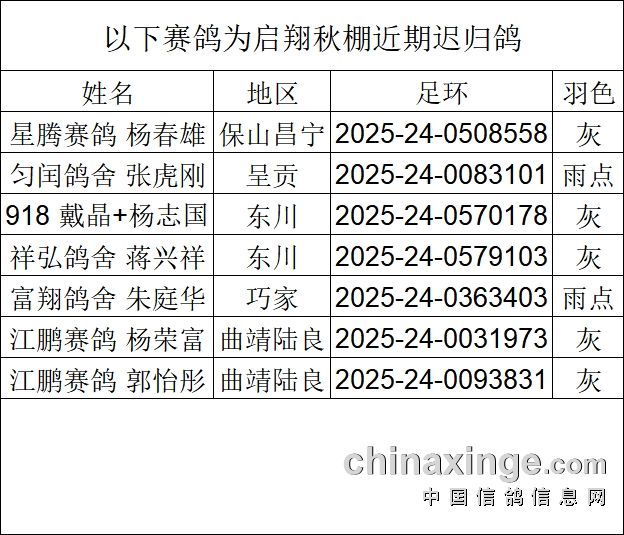 云南东川启翔秋棚2025近期迟归鸽