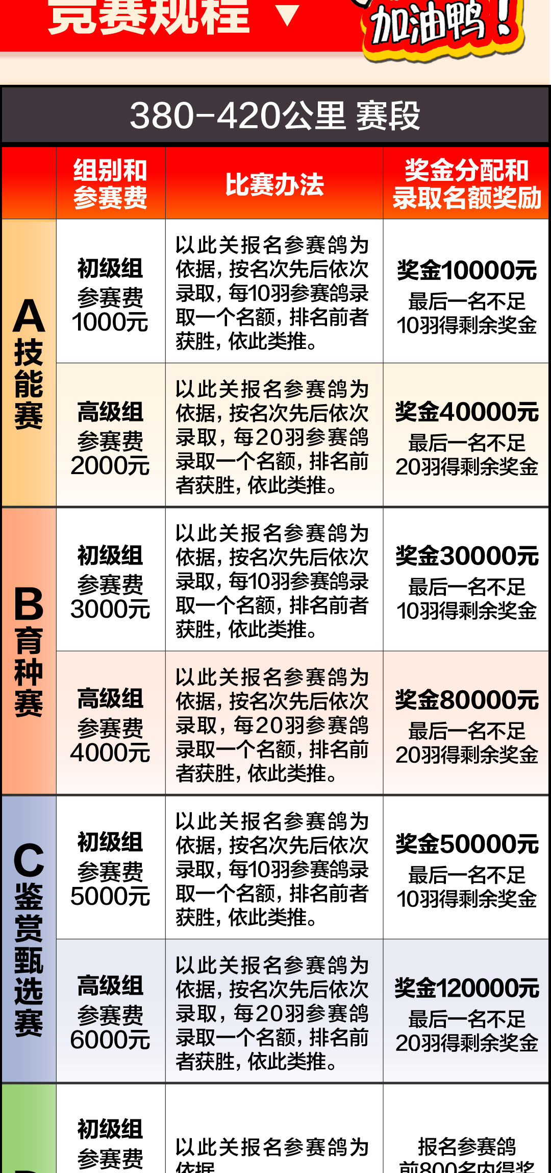 集鸽当天不接受任何报名。