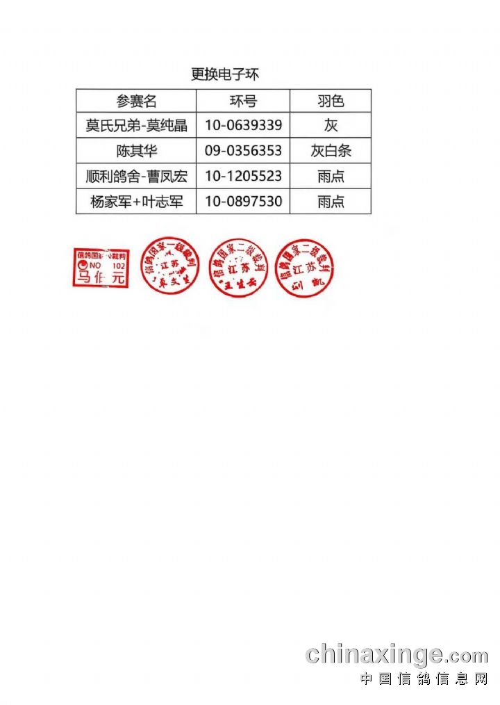江苏宝宏秋棚决赛更换电子环名单