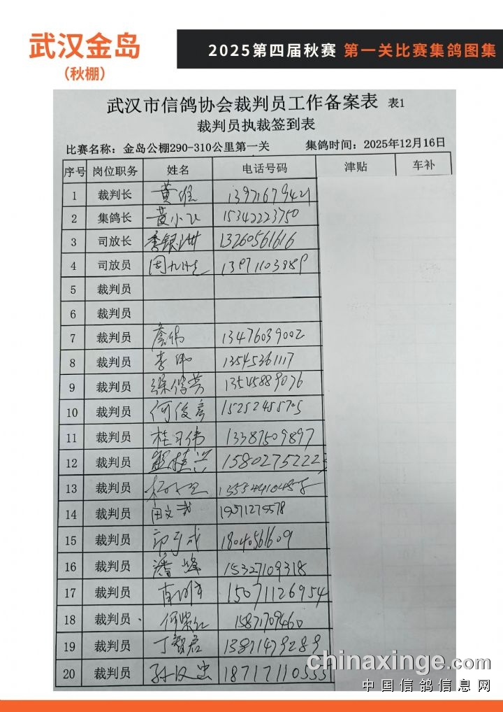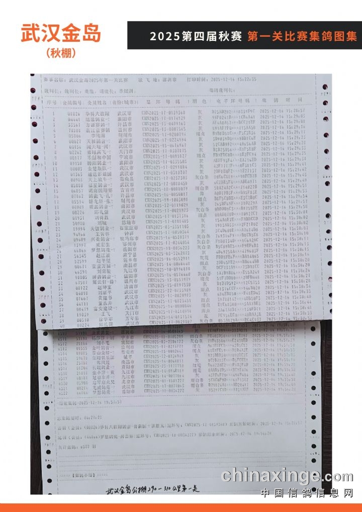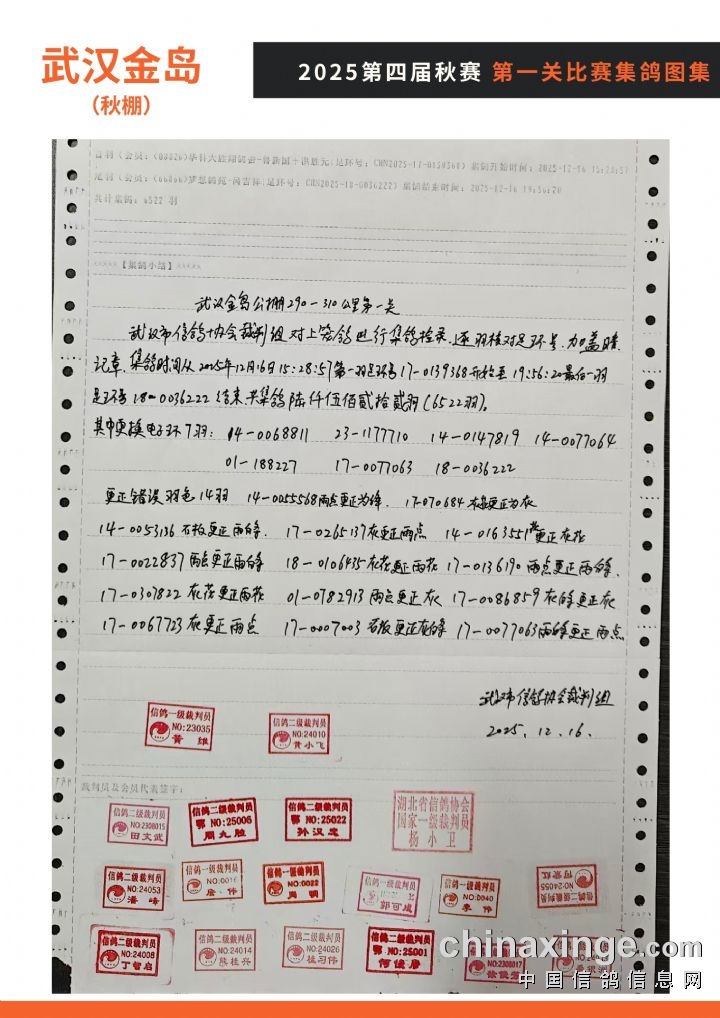 武汉金岛赛鸽公棚2025年第一关附加赛及精英赛未上笼名单