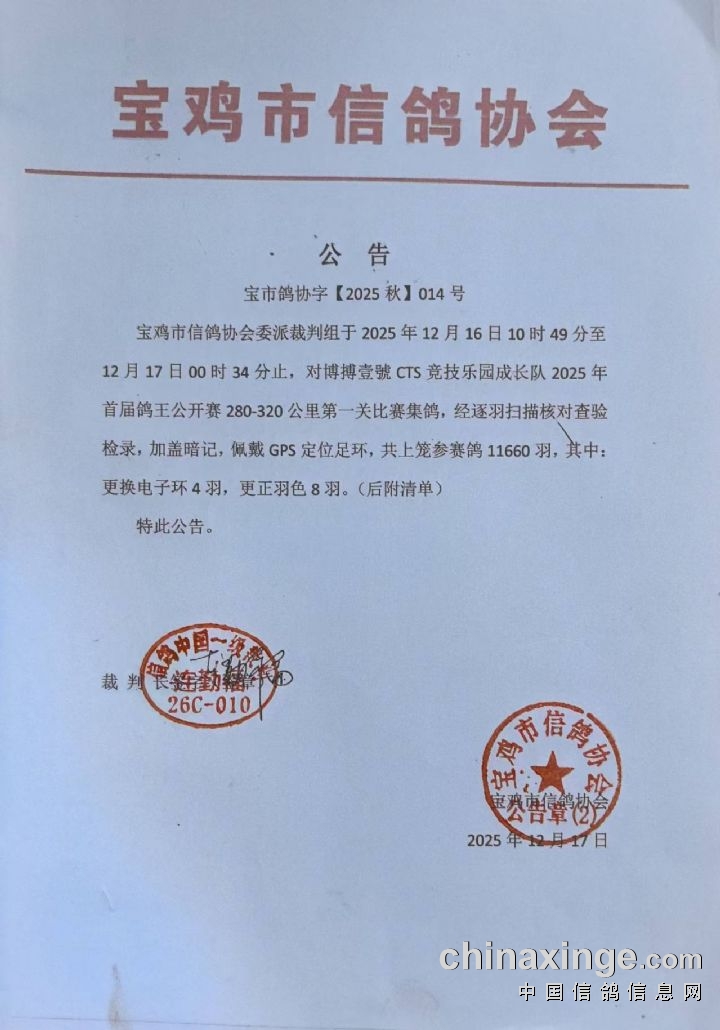 博搏壹號CTS竞技乐园成长队鸽王公开赛(韩城站)领奖公告
