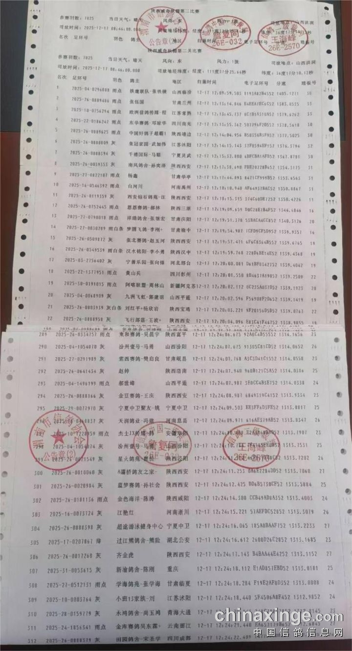 陕西威奇秋棚第二关集鸽清单(按鸽主)