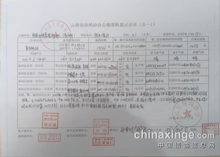 2025年12月17日银集赛鸽中心春棚家飞扫描成绩汇总