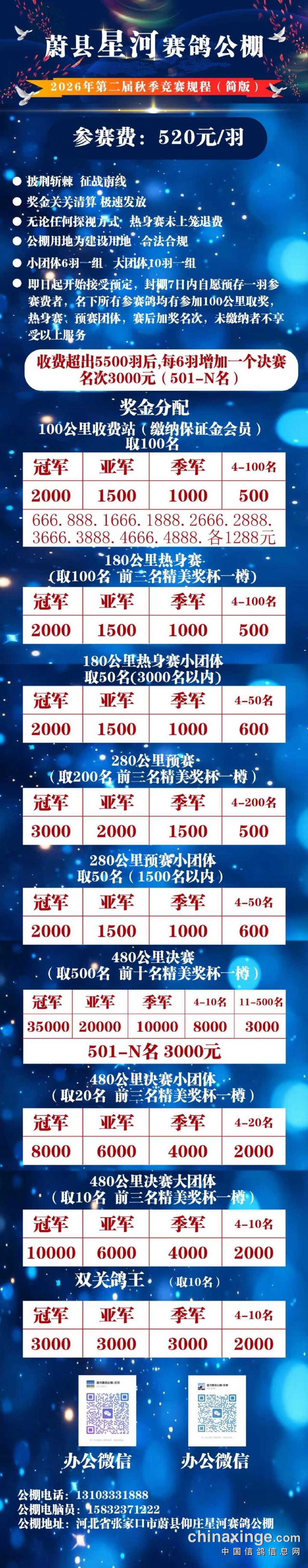 蔚县星河赛鸽公棚2026年第二届秋季竞赛规程(简版)