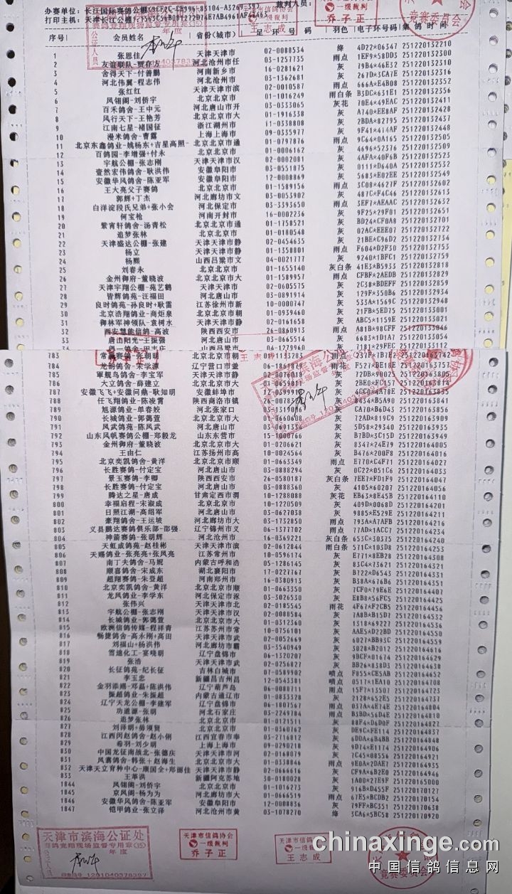 天津长江赛鸽公棚380-420公里预赛集鸽打印清单