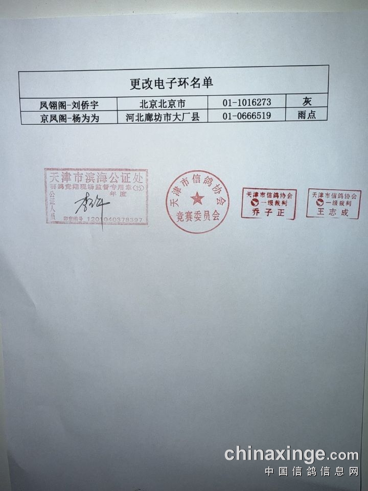 天津长江赛鸽公棚380-420公里预赛更改羽色名单