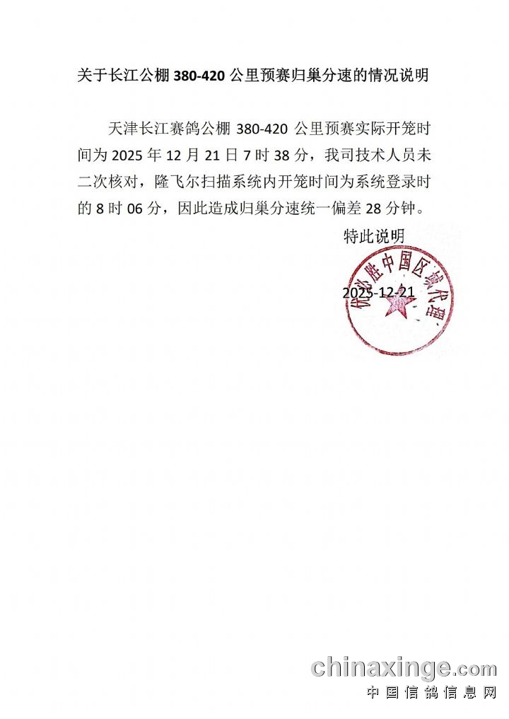天津长江赛鸽公棚380-420公里预赛上笼逐羽扫描清单