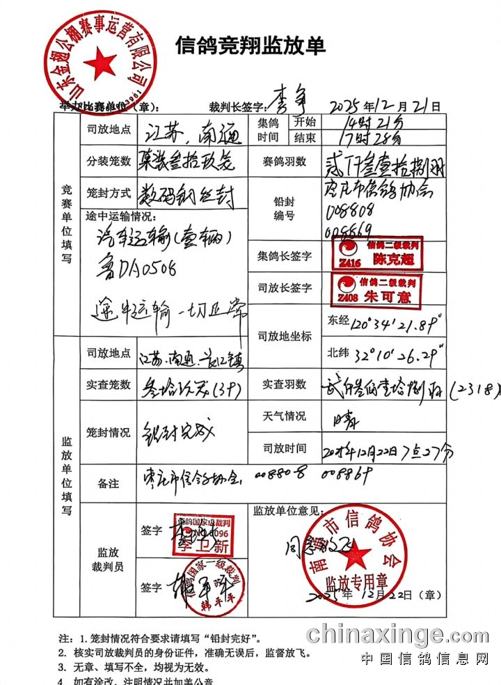 金翅天禧(大秋棚)2025年第二关比赛监放单