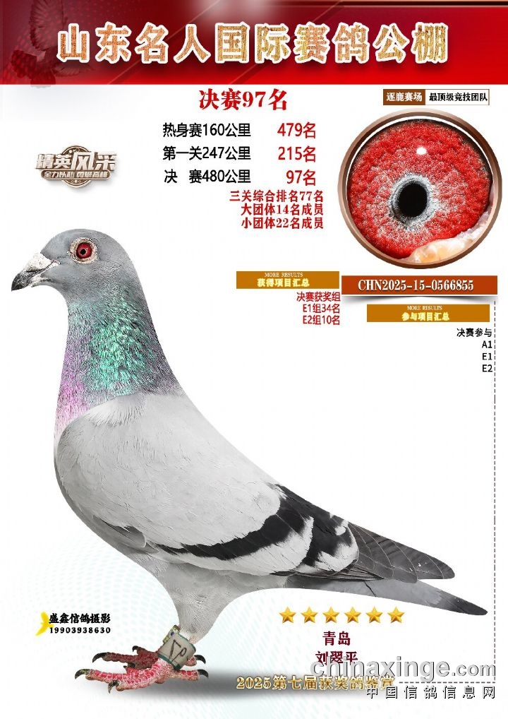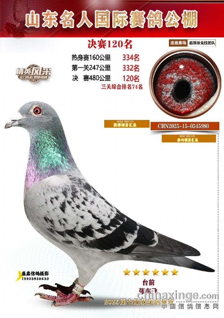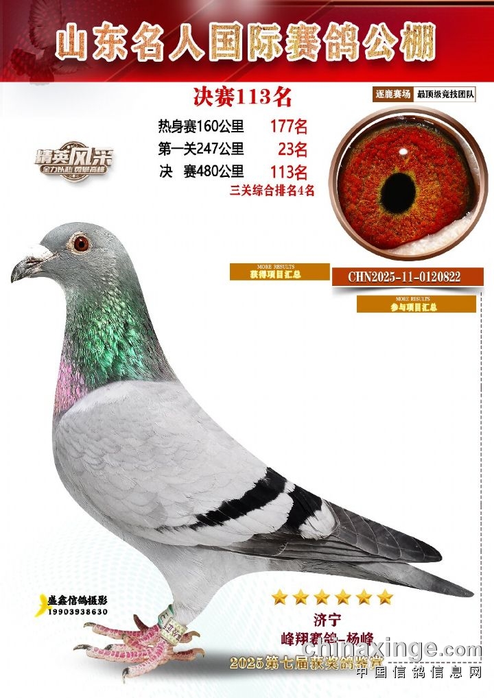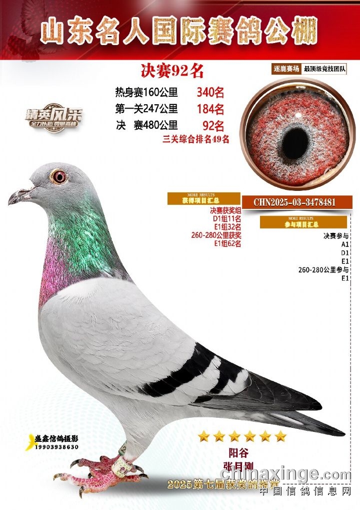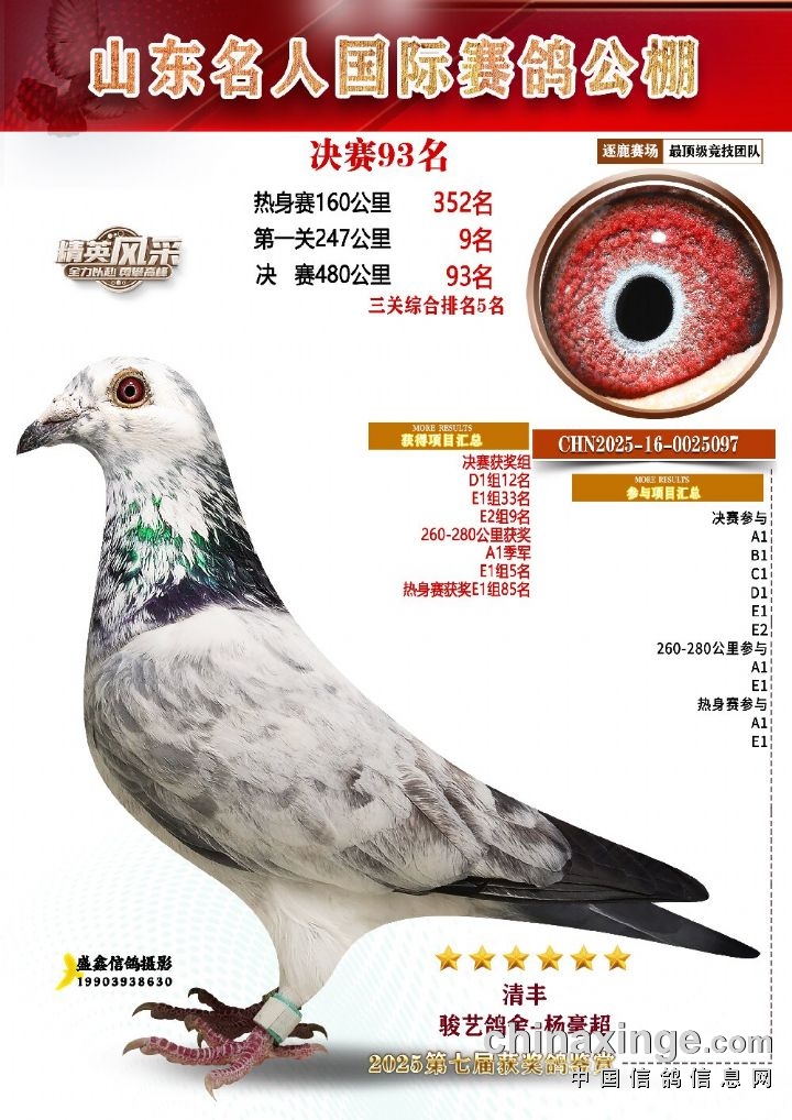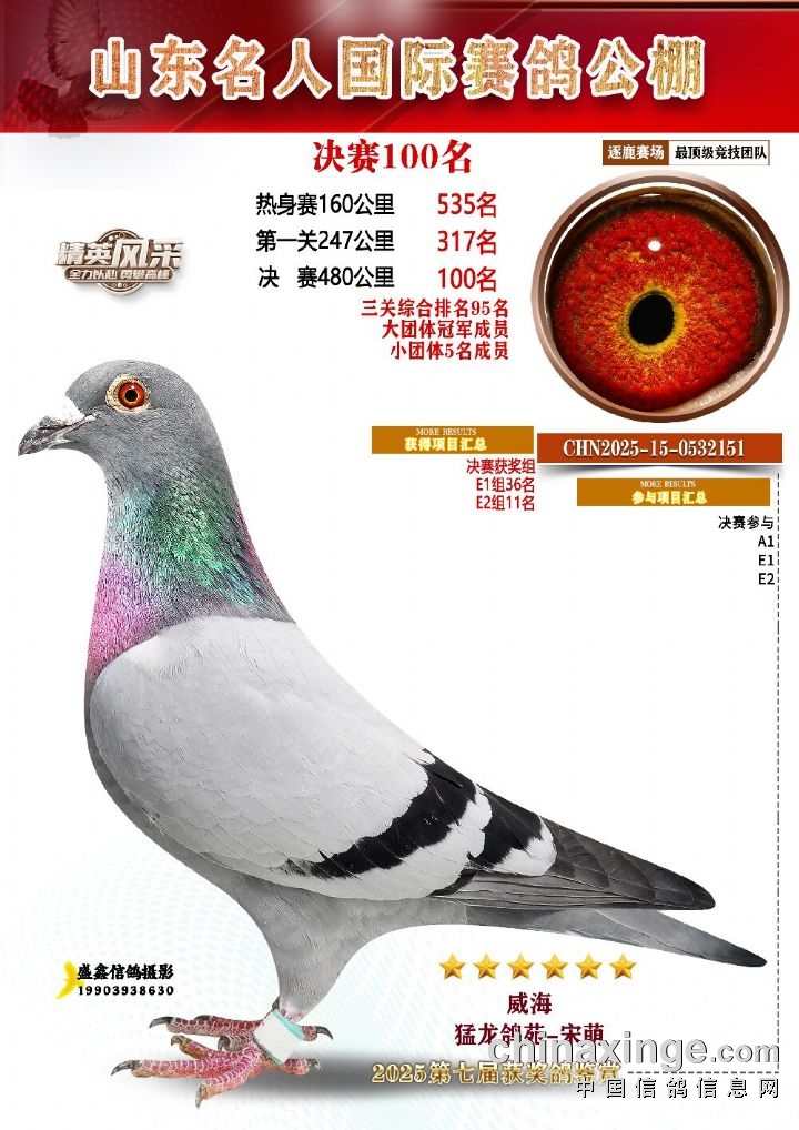 山东名人赛鸽公棚91-120名获奖鸽照片