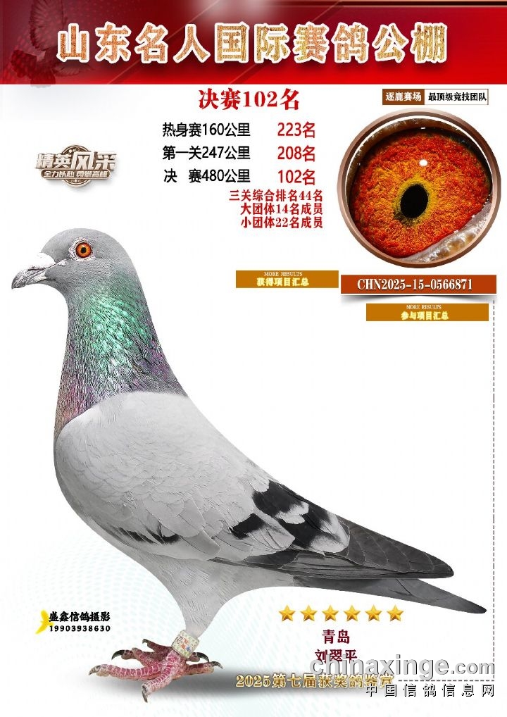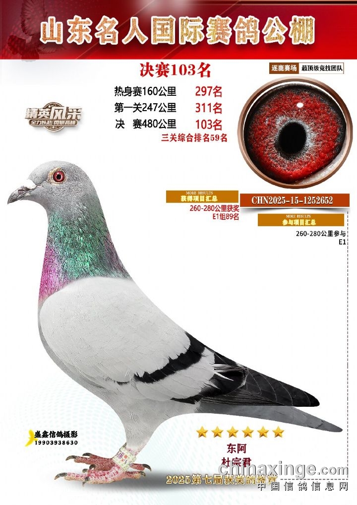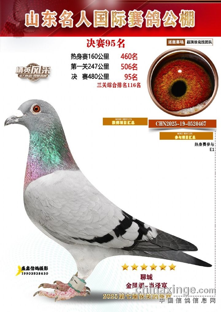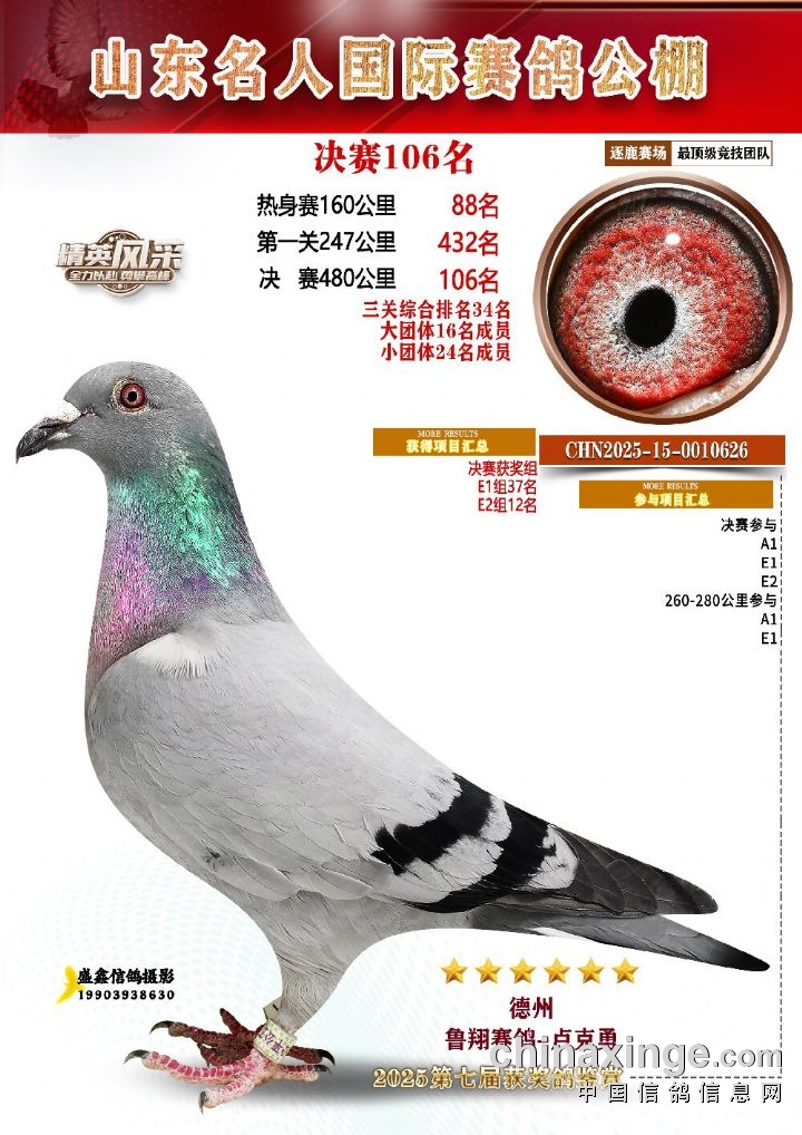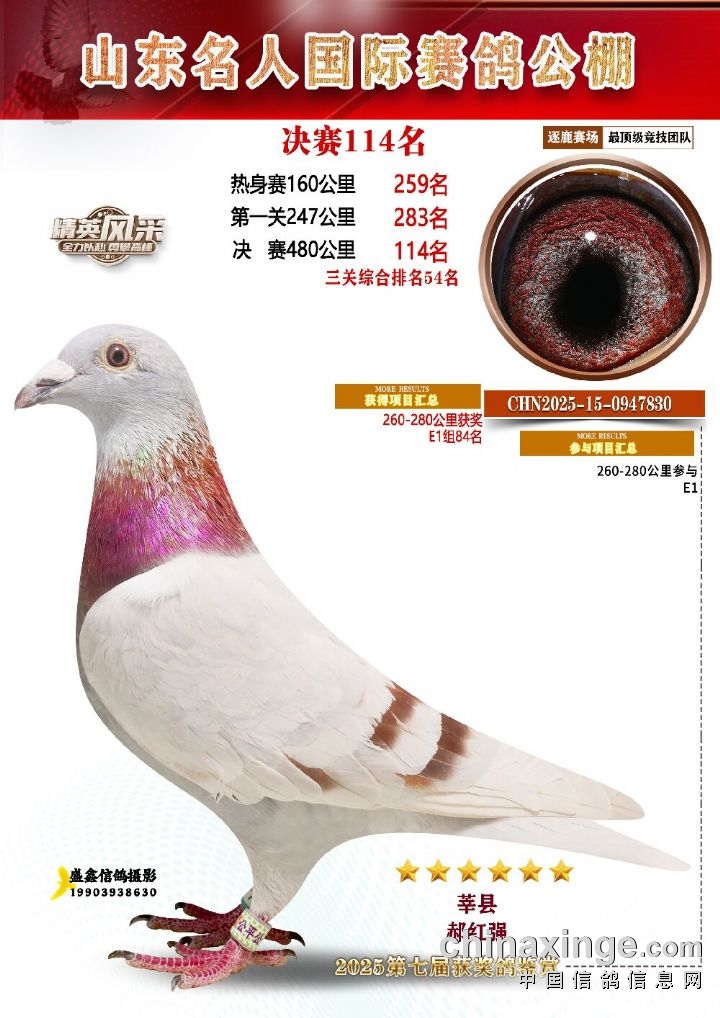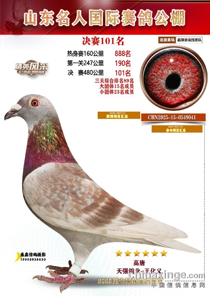 山东名人赛鸽公棚91-120名获奖鸽照片