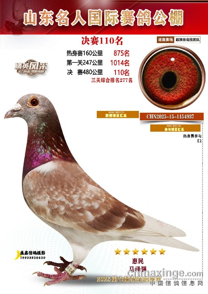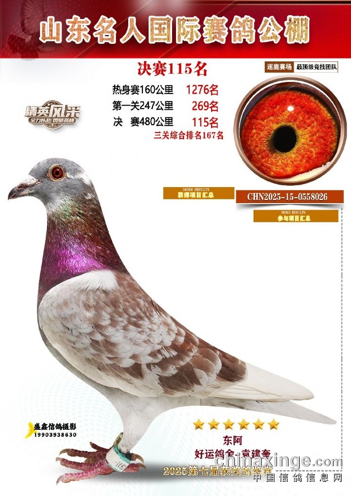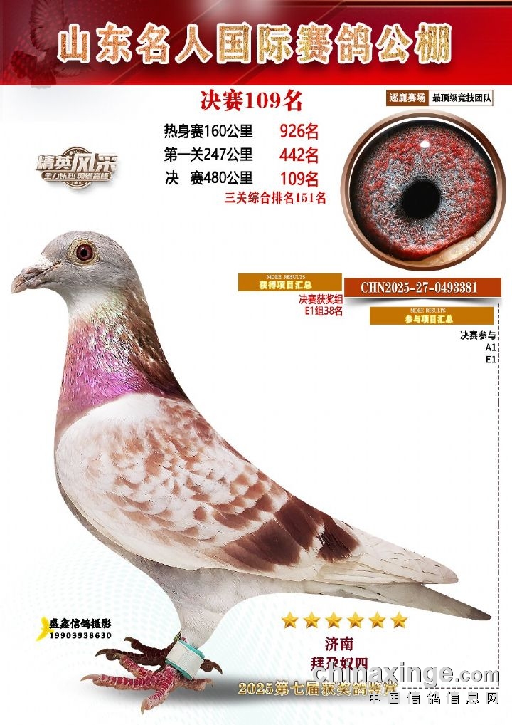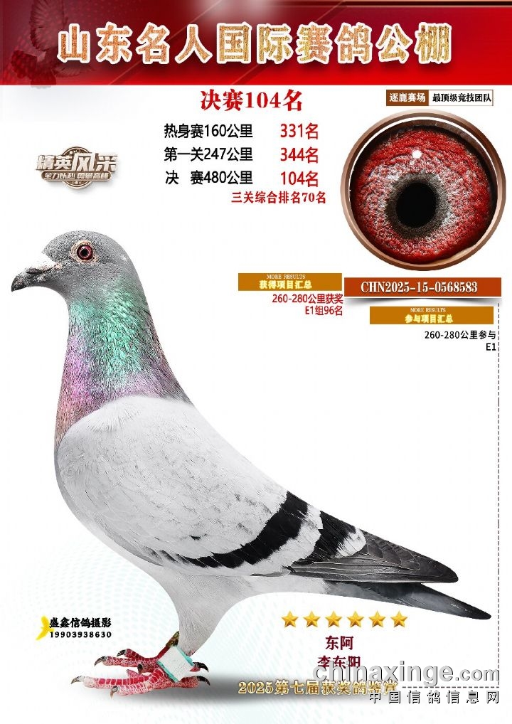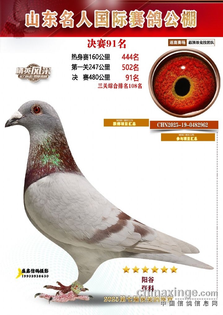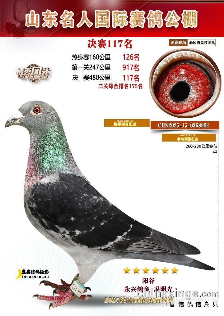 山东名人赛鸽公棚91-120名获奖鸽照片