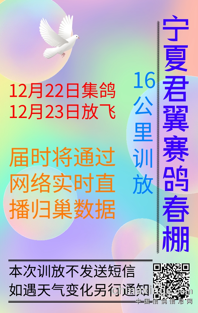 宁夏君翼赛鸽公棚(春棚)第六站16公里训放通知