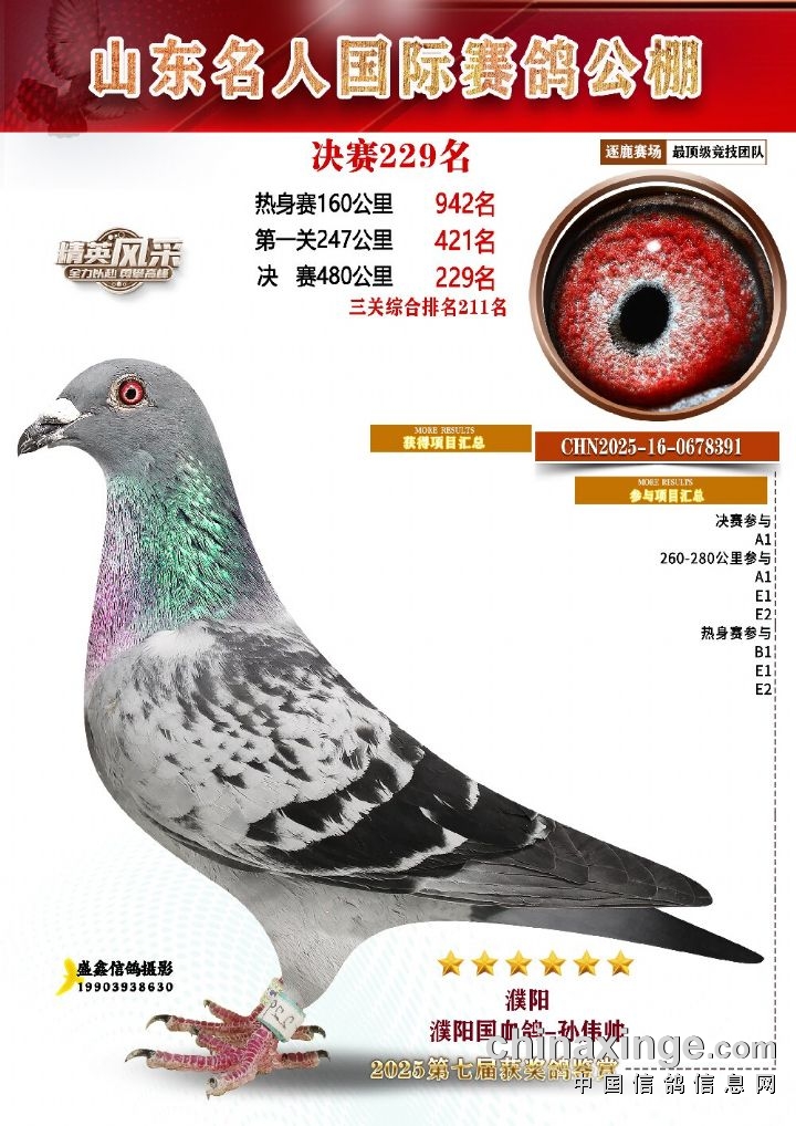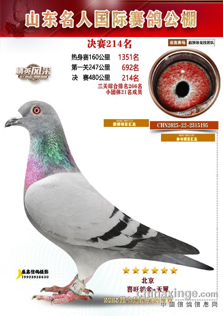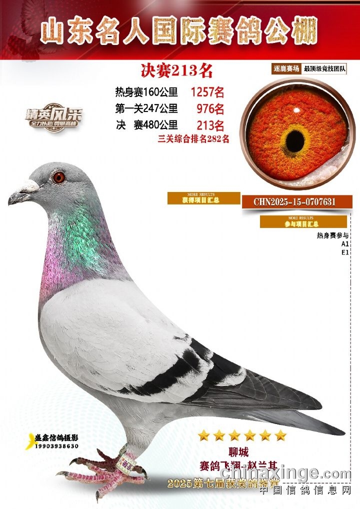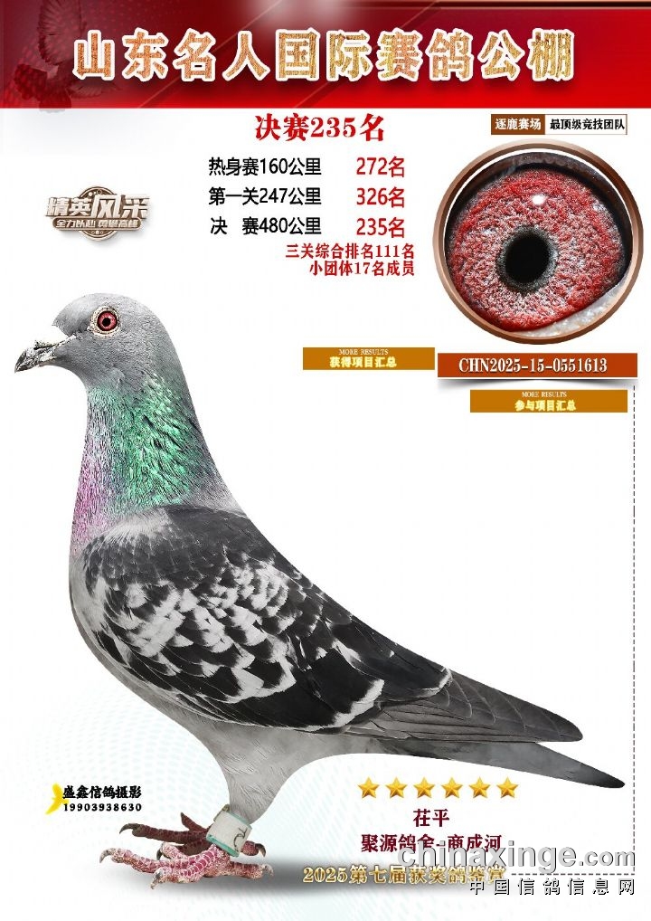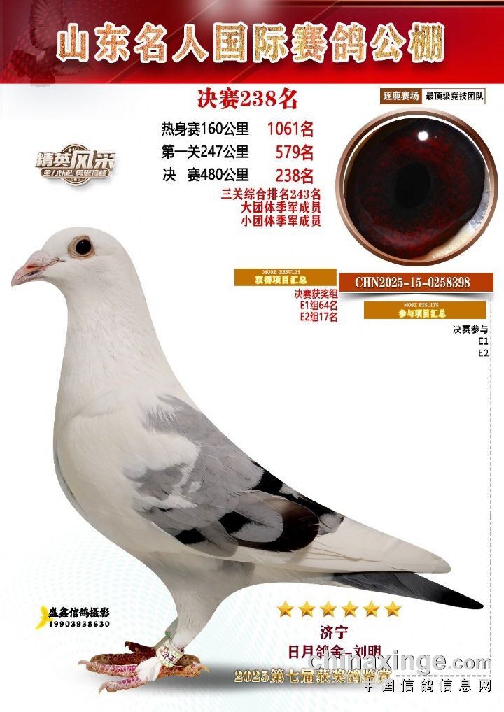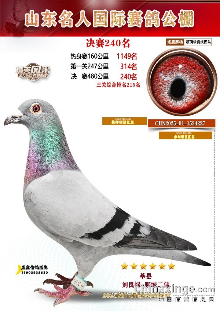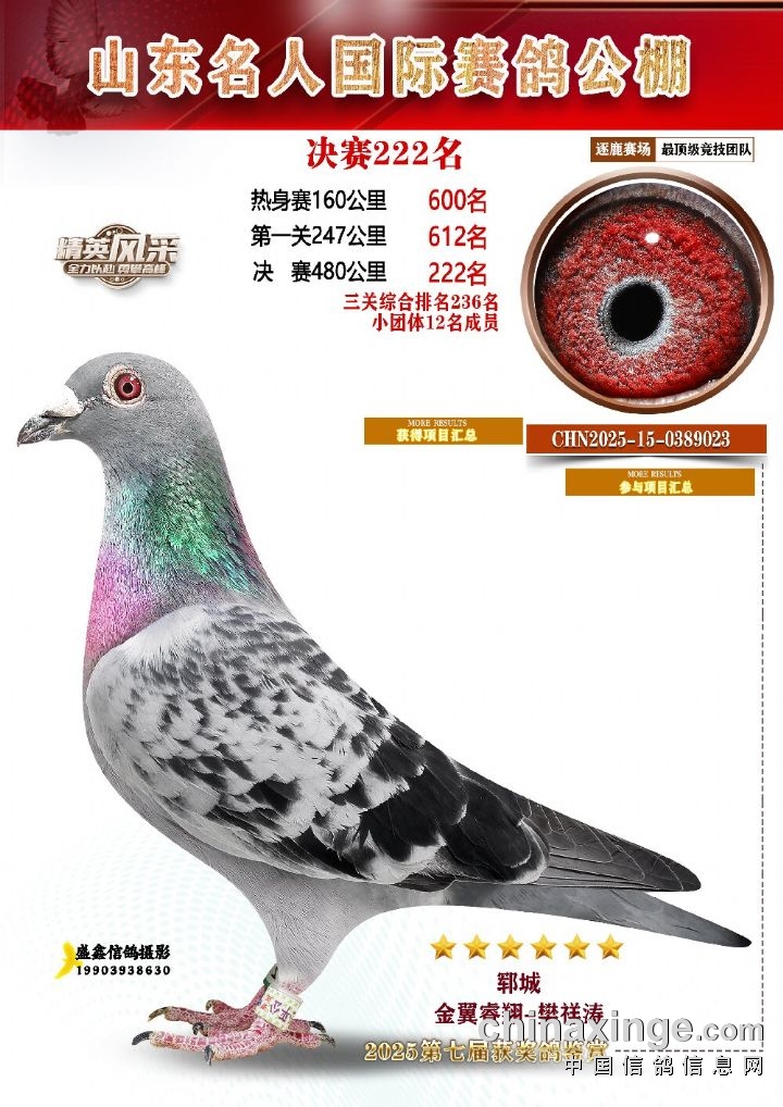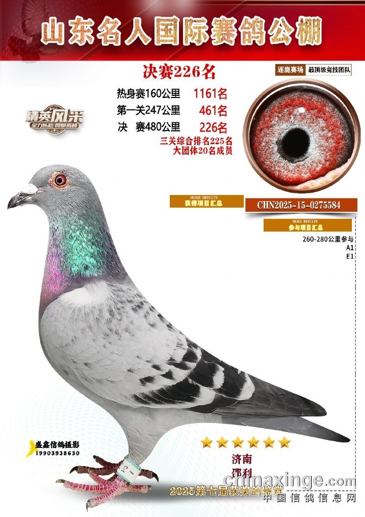 山东名人赛鸽公棚211-240名获奖鸽照片
