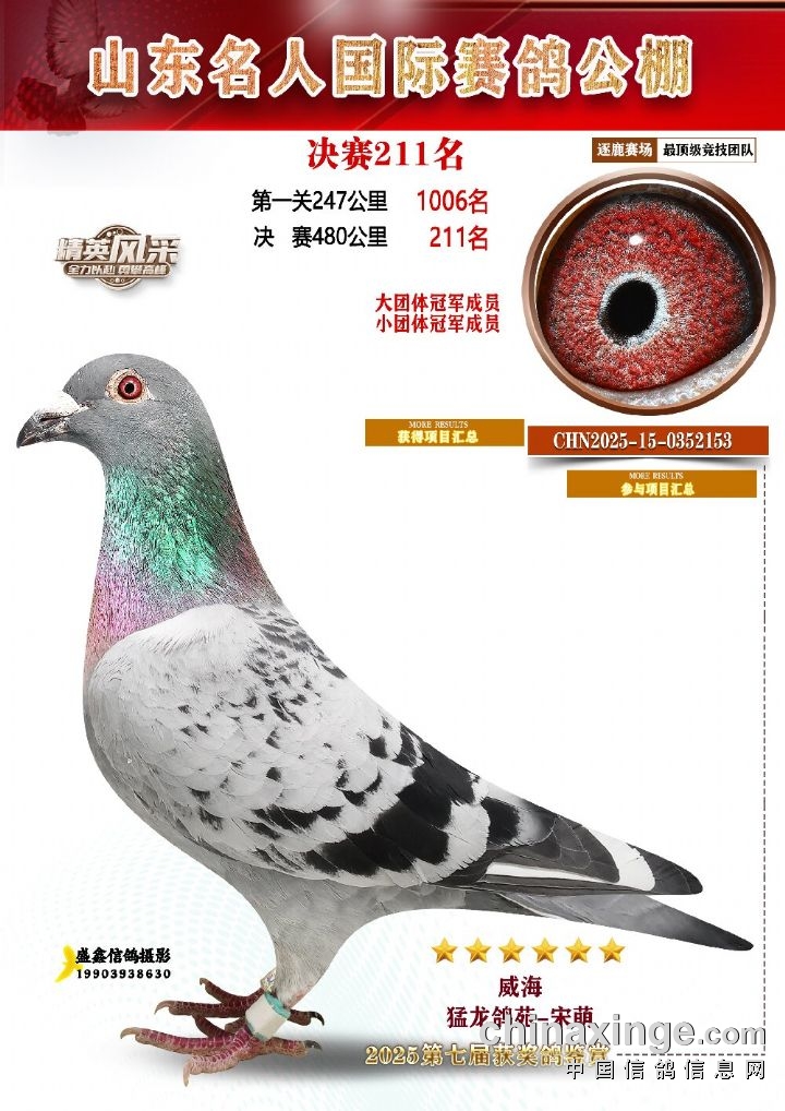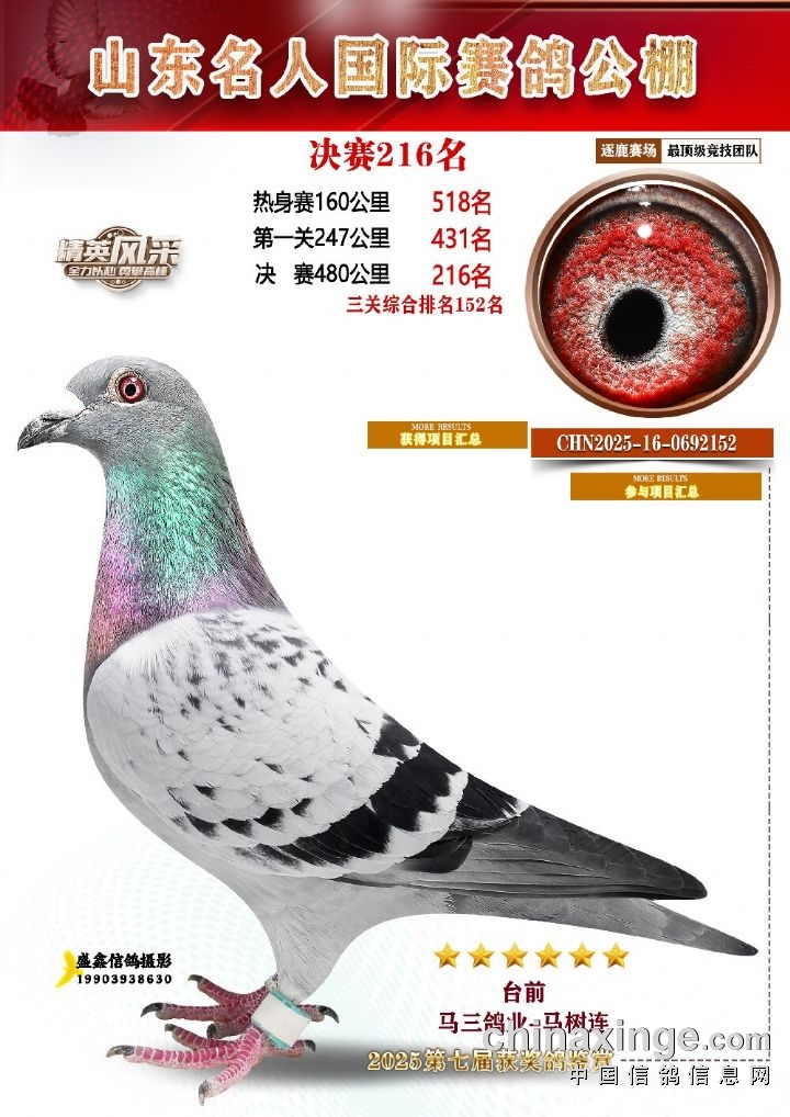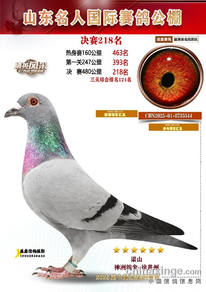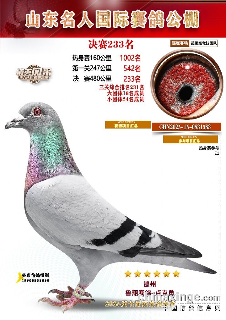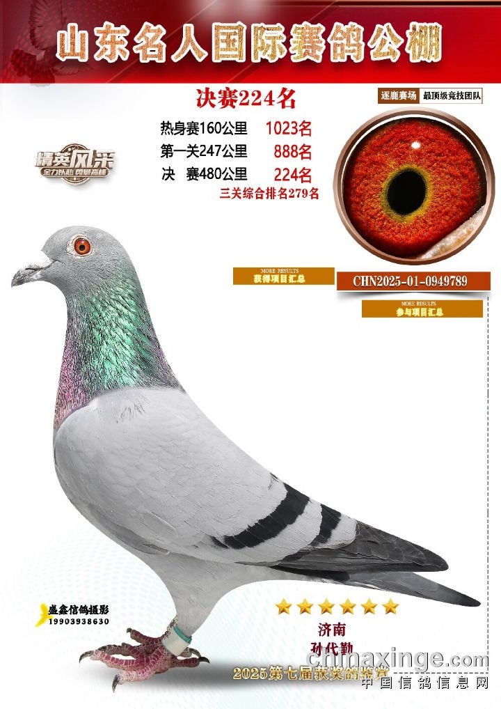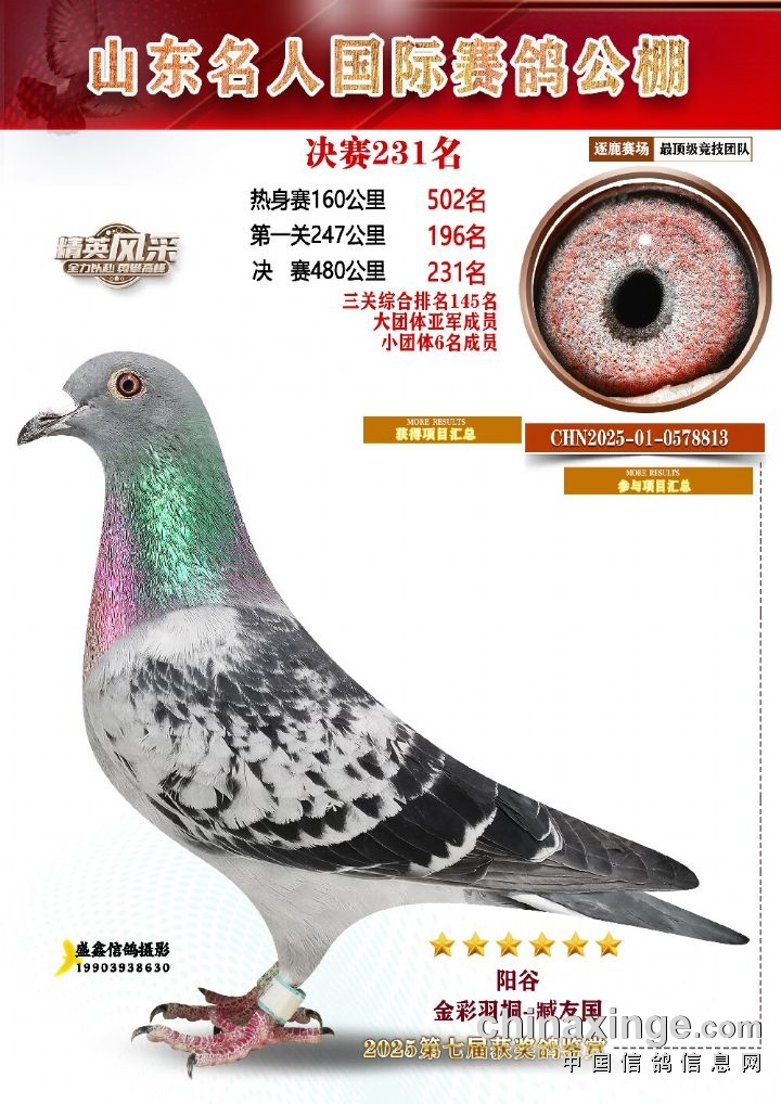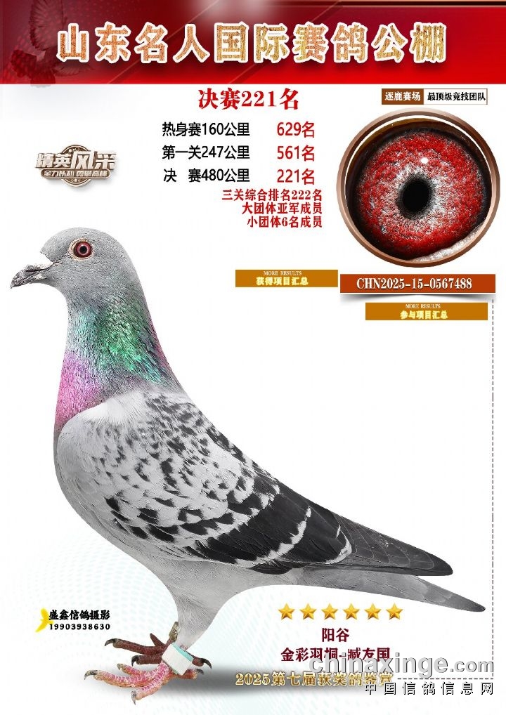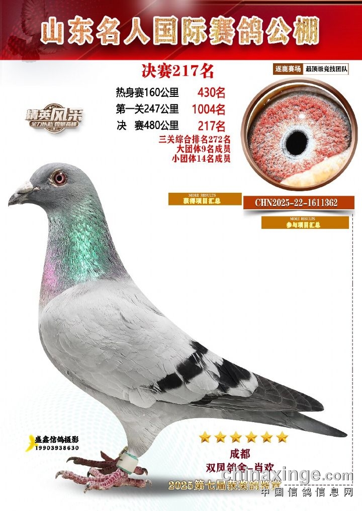 山东名人赛鸽公棚211-240名获奖鸽照片