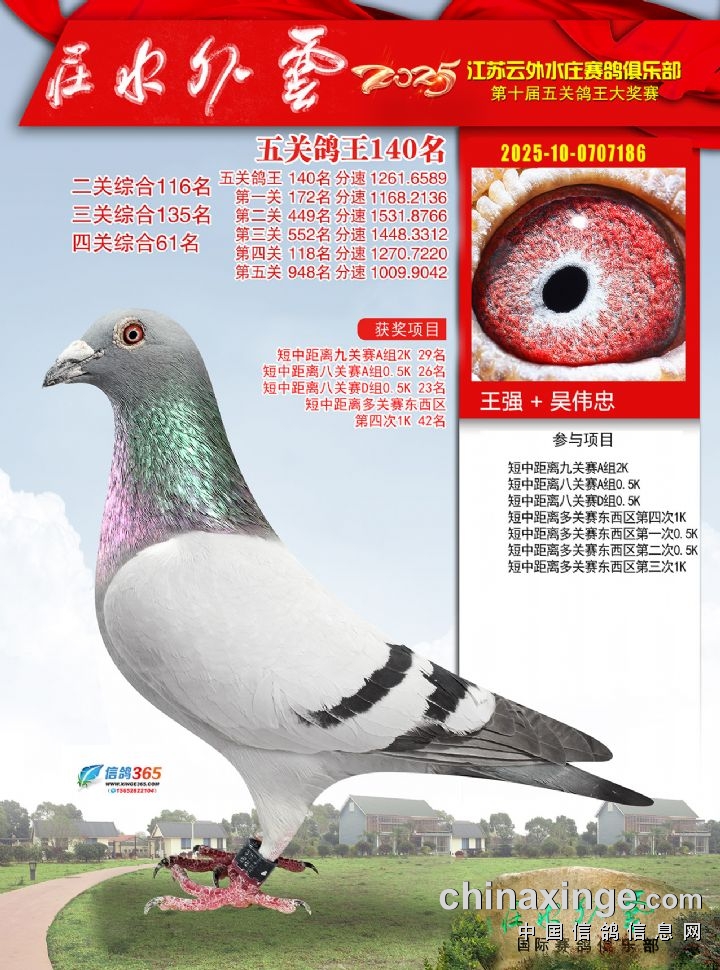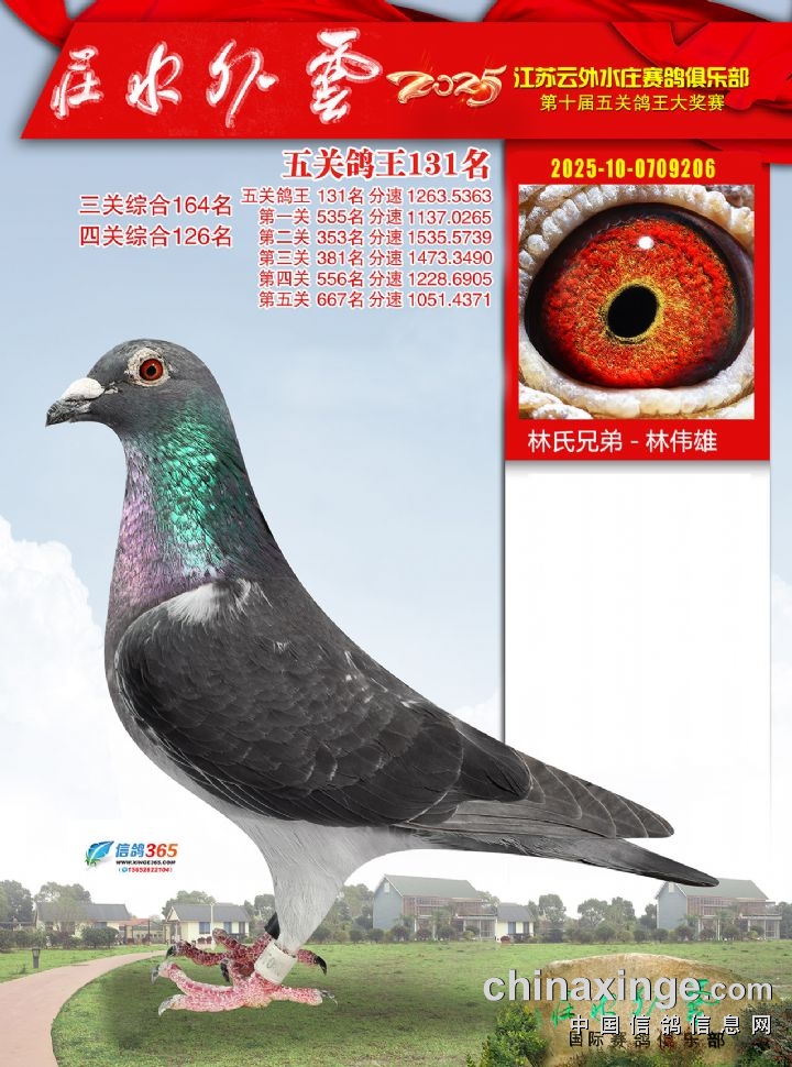 2025年云外水庄多关鸽王大奖赛131-140名