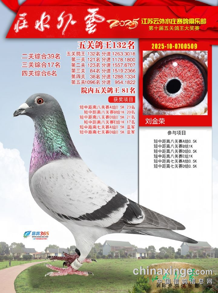 2025年云外水庄多关鸽王大奖赛501-510名
